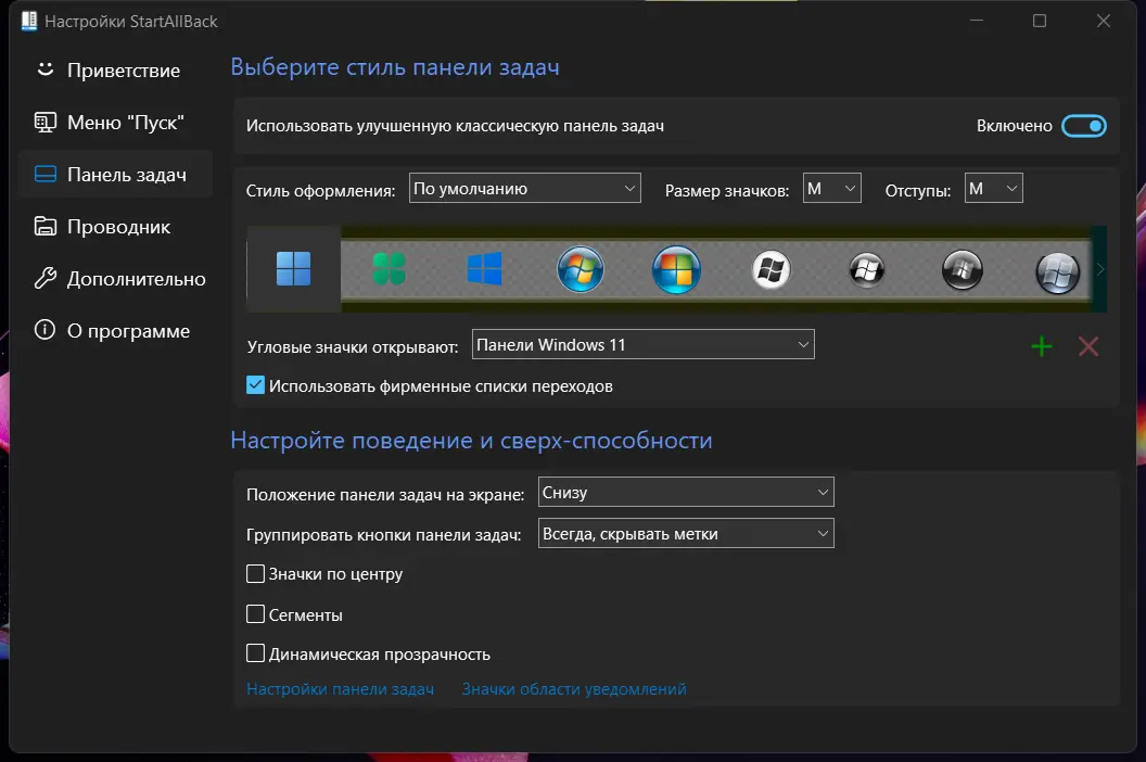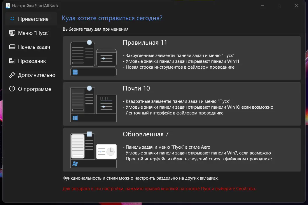Работа с StartAllBack