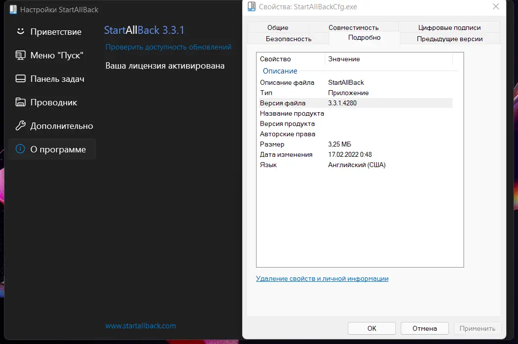 StartAllBack не требует прав администратора для установки и полностью локализуется под язык операционной системы, обеспечивая естественное взаимодействие с интерфейсом.