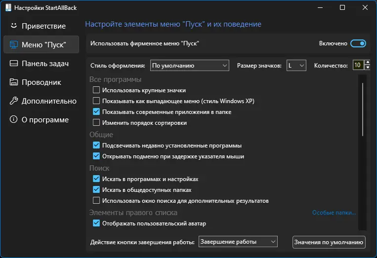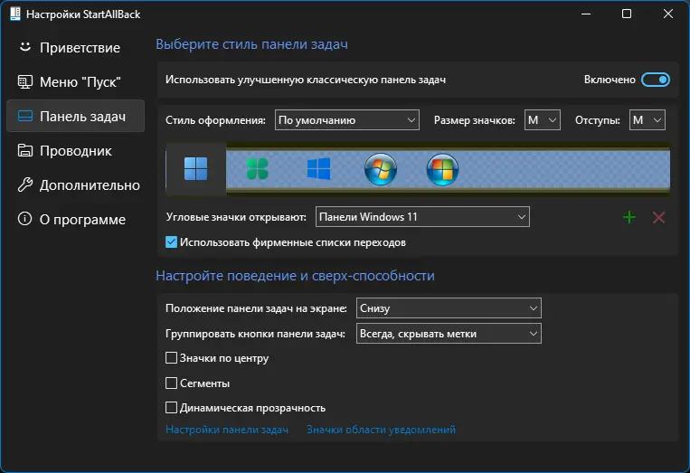 StartAllBack не заменяет системные компоненты, а дополняет их, обеспечивая стабильную работу без конфликтов с обновлениями.