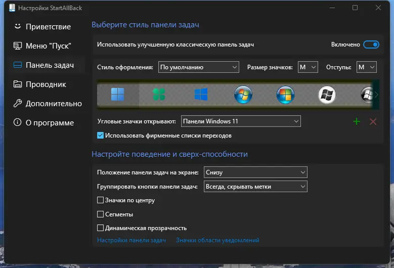 Работа с StartAllBack
