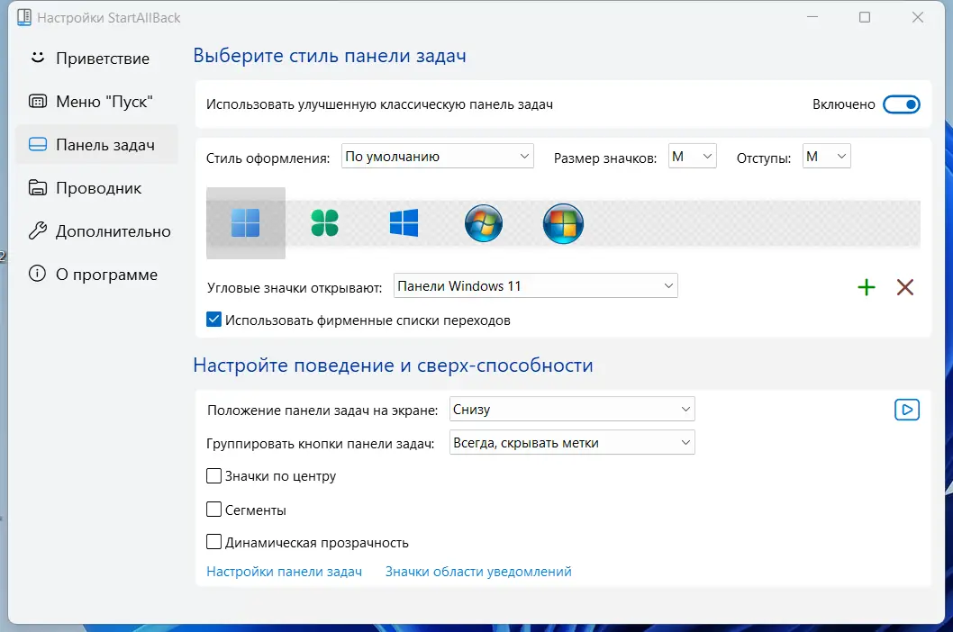 Работа с StartAllBack