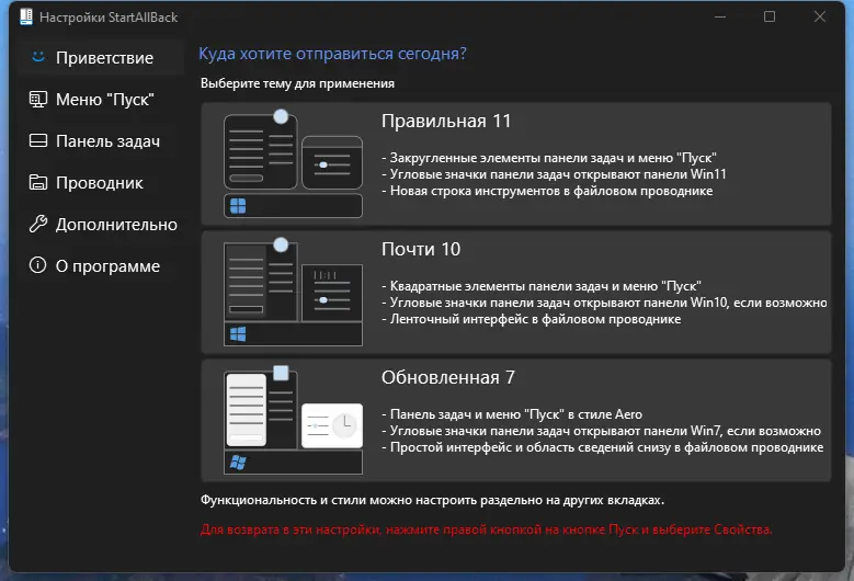 Работа с StartAllBack