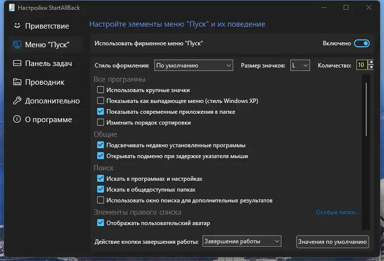 Работа с StartAllBack