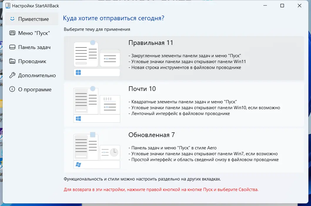 StartAllBack — это инструмент для пользователей, желающих вернуть классическое меню «Пуск» в операционную систему. Программа возвращает привычный интерфейс, характерный для более ранних версий Windows, и обеспечивает плавную интеграцию с современной архитектурой. Она идеально подходит для тех, кто не хочет жертвовать удобством ради обновлений.