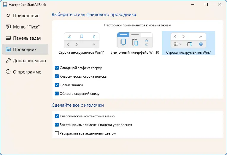 StartAllBack возвращает классическое меню «Пуск» в современные версии операционной системы, обеспечивая привычный и эффективный интерфейс. Программа идеально подходит для пользователей, которым неудобен новый дизайн Windows 11. Она позволяет вернуть старую структуру меню без потери производительности и стабильности системы.