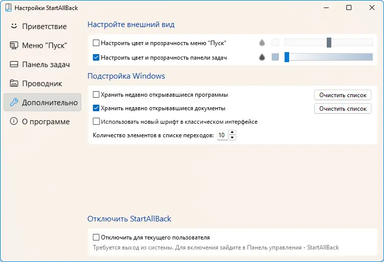 StartAllBack интегрируется напрямую в оболочку системы, не требуя перезагрузки после настройки.