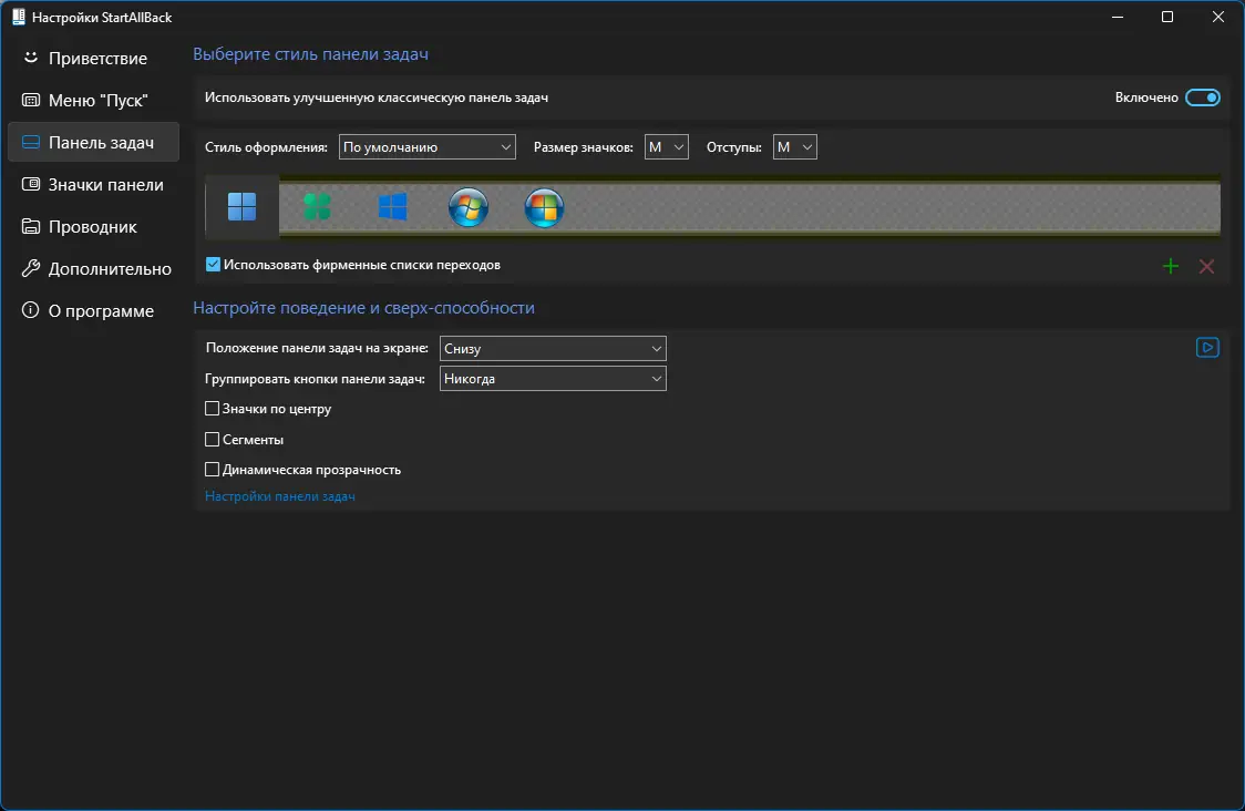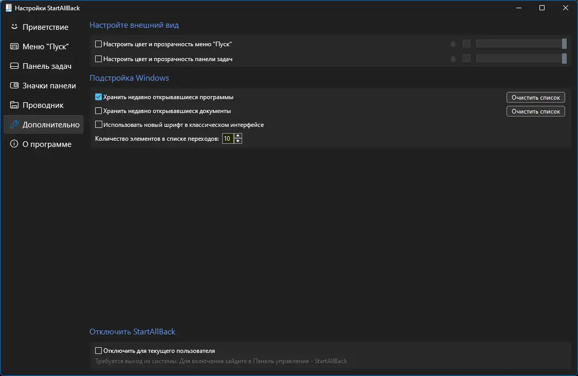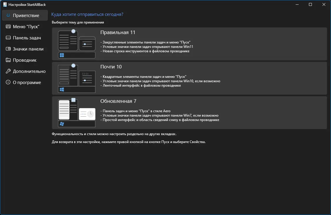 Работа с StartAllBack