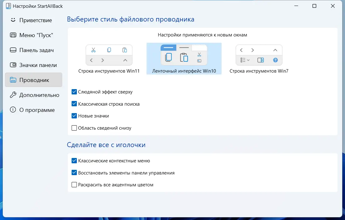 Работа с StartAllBack