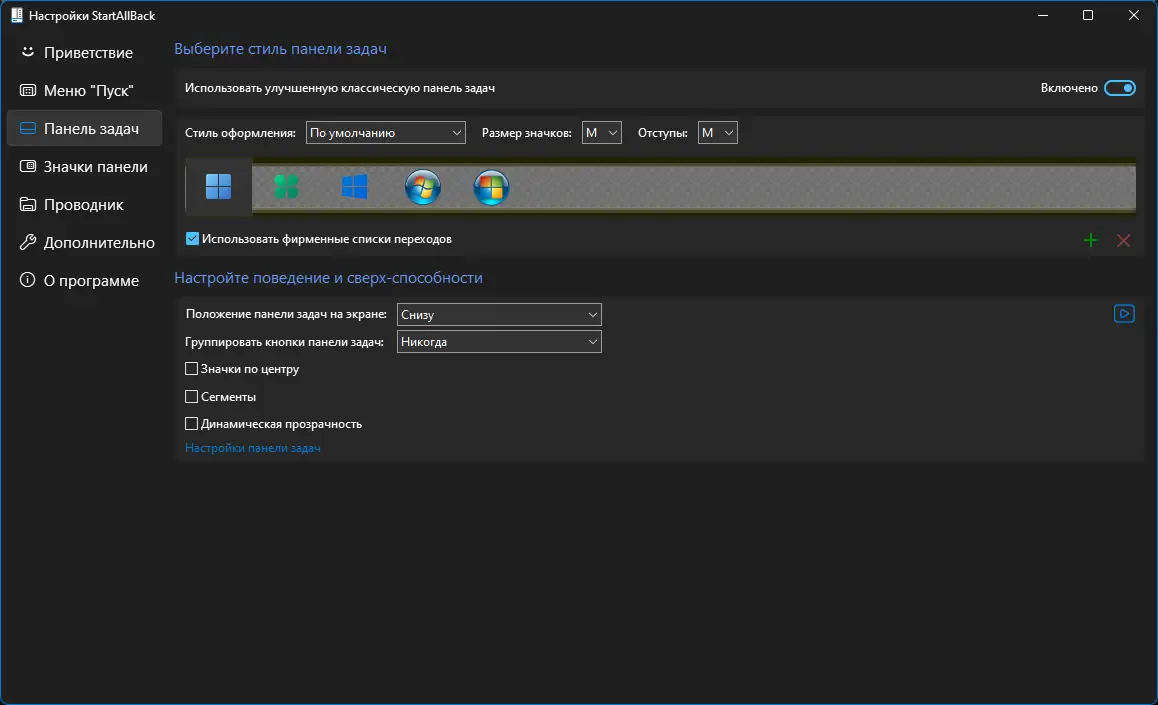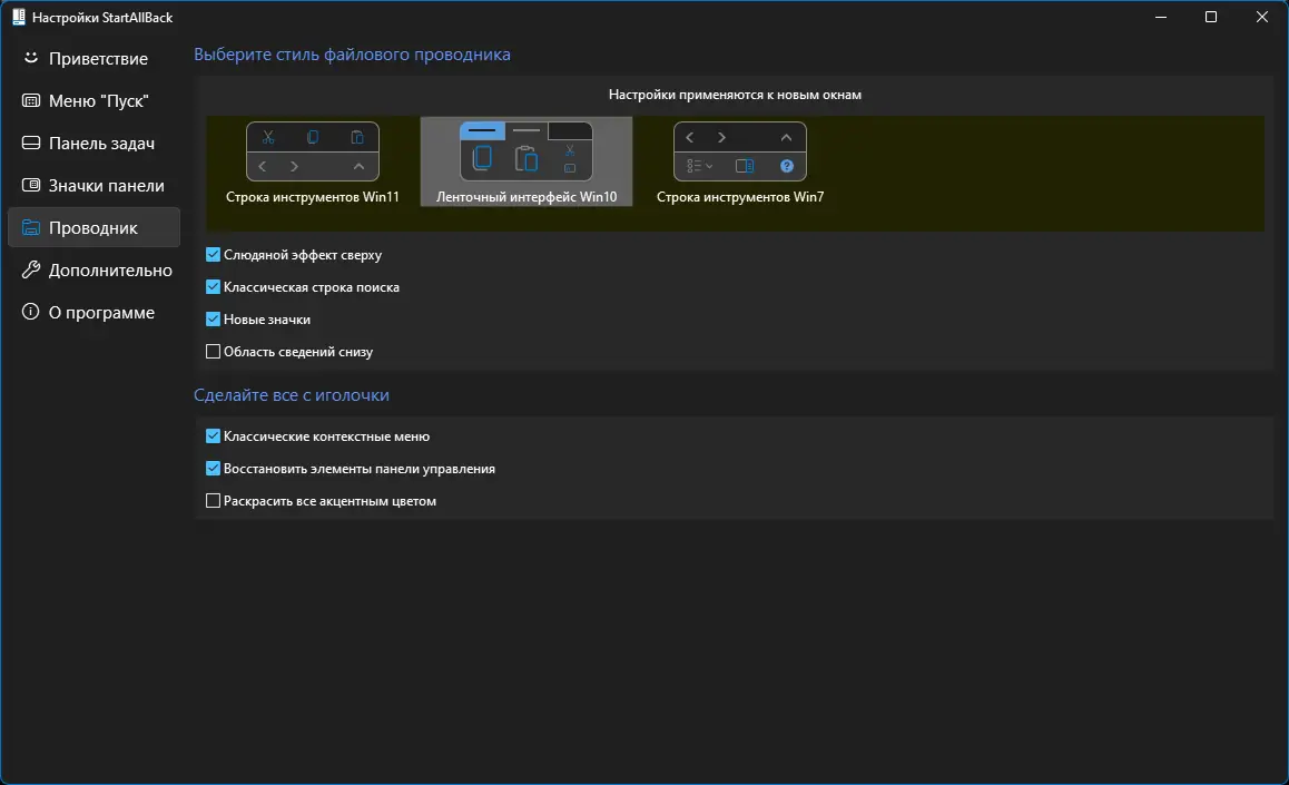 Работа с StartAllBack