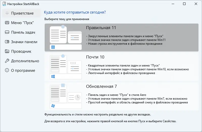 StartAllBack — это инструмент для пользователей, которые хотят вернуть привычный интерфейс меню «Пуск» в современных версиях операционной системы. Программа адаптирует внешний вид и поведение кнопки «Пуск» под стиль, знакомый по более ранним редакциям, обеспечивая комфортную работу на рабочем столе. Она идеально подходит для тех, кто не хочет менять привычный порядок взаимодействия с системой.