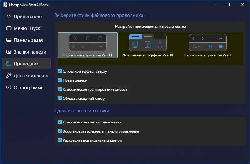 Работа с StartAllBack