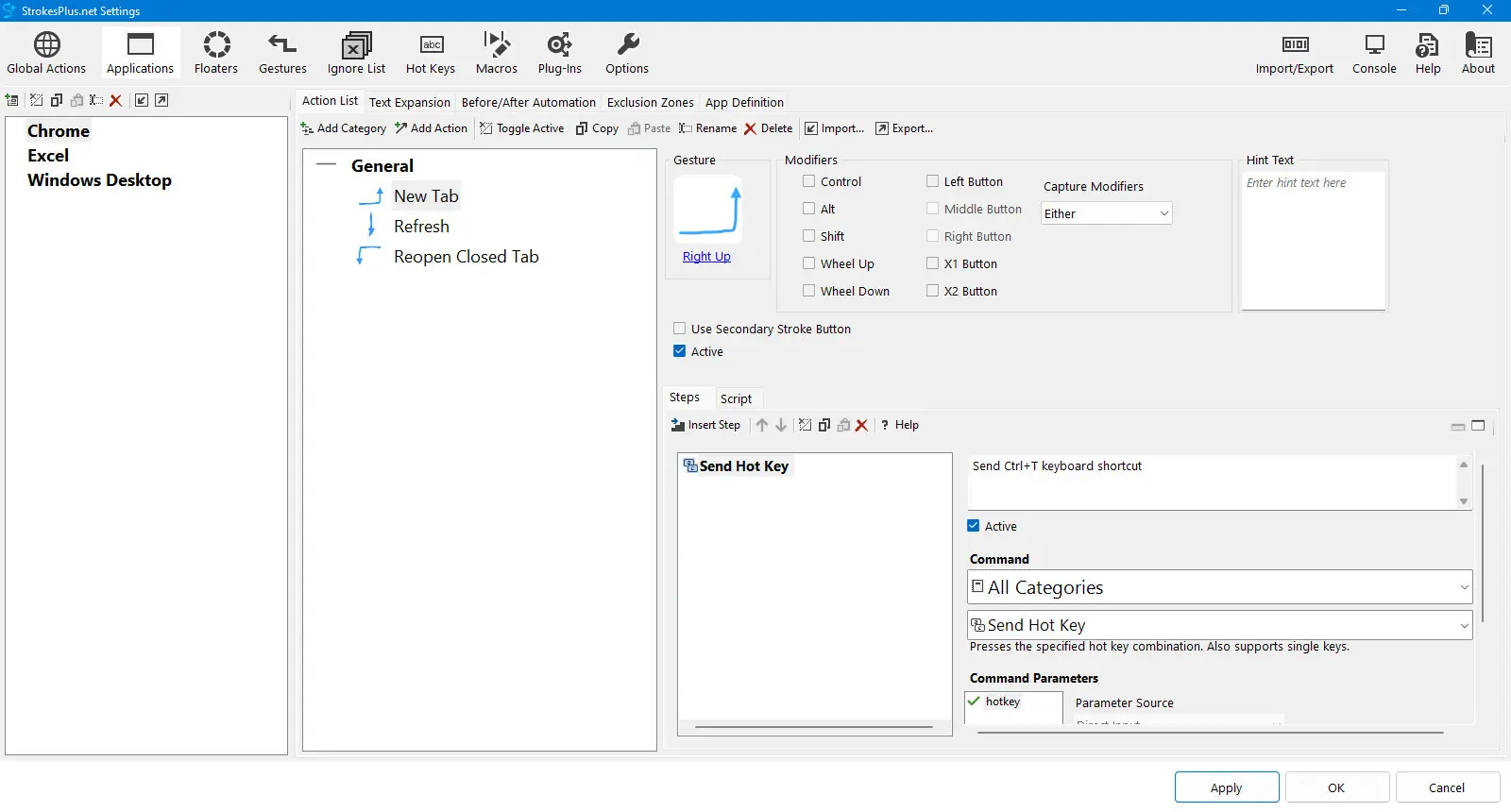 StrokesPlus.net — это мощная бесплатная утилита для распознавания жестов мыши в Windows, позволяющая настраивать произвольные движения курсора для выполнения различных действий. Программа сочетает простоту для новичков и глубокие возможности автоматизации для продвинутых пользователей, поддерживая скрипты на JavaScript, макросы, горячие клавиши и расширение текста.