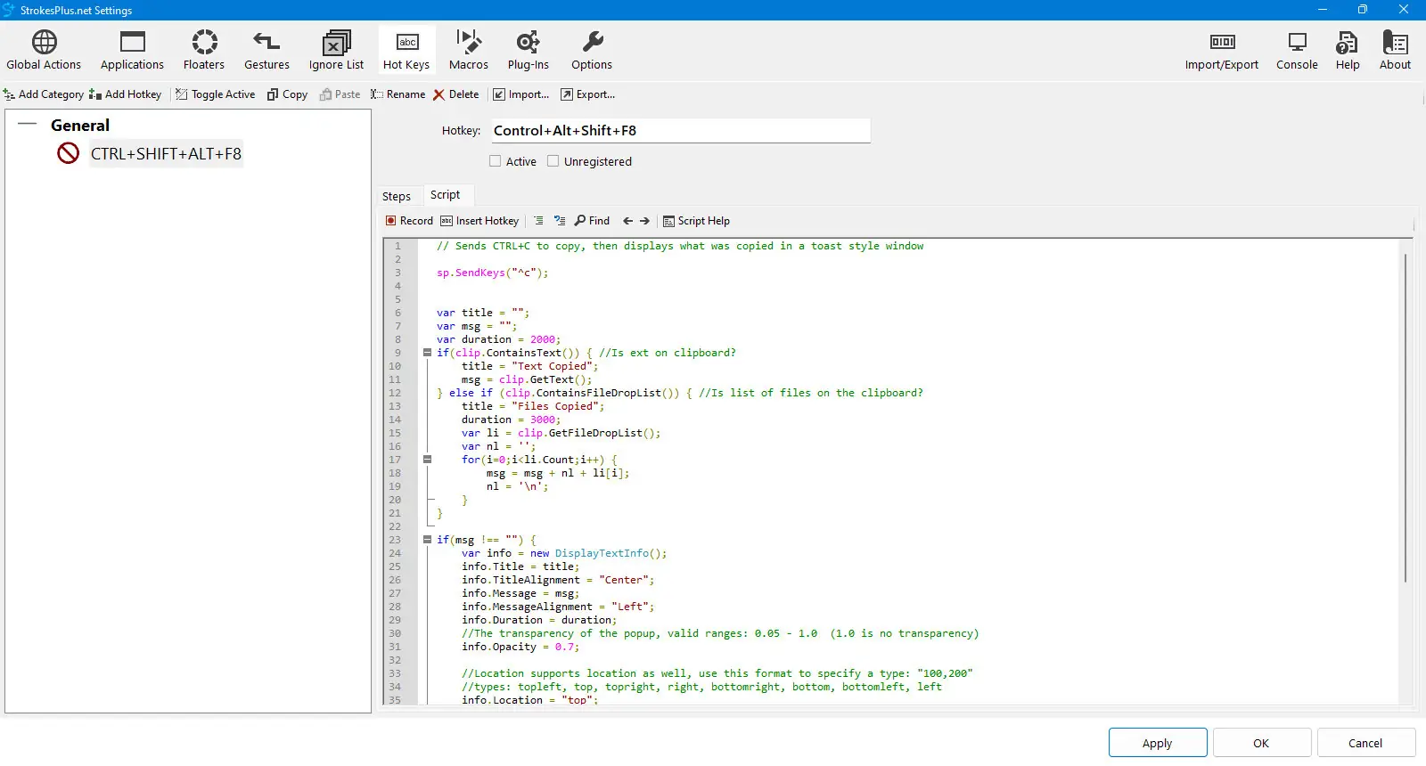 StrokesPlus.net — это современная версия популярной утилиты StrokesPlus, разработанная как полностью бесплатное решение для расширения функциональности мыши в операционной системе Windows. Она позволяет создавать пользовательские жесты, которые запускают команды, вводят текст, управляют окнами или выполняют сложные сценарии, сокращая количество рутинных действий. Программа построена на мощной основе с использованием Microsoft ClearScript и движка Chrome V8, что обеспечивает высокую производительность и стабильность при работе с JavaScript-скриптами. Поддержка .NET Framework открывает доступ к широкому спектру системных возможностей, делая автоматизацию практически безграничной. Это делает инструмент одинаково полезным как для обычных пользователей, так и для разработчиков.