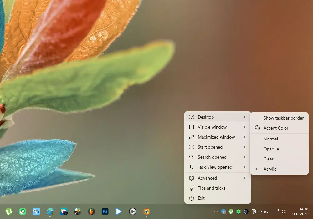 Прозрачная панель задач может быть настроена не только по стилю, но и по поведению в зависимости от контекста использования системы.