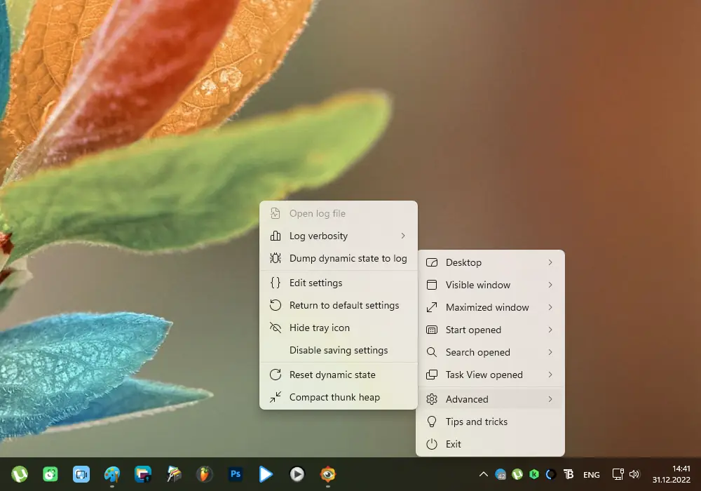 TranslucentTB — это легковесная утилита, позволяющая настроить внешний вид панели задач в операционных системах Windows 10 и Windows 11. Программа заменяет стандартный эффект прозрачности на более гибкие и визуально привлекательные варианты, включая матовое размытие, акриловый стиль и полную прозрачность. Она работает в фоне, не нагружая систему, и поддерживает динамическое изменение стиля панели в зависимости от активных окон или системных меню.