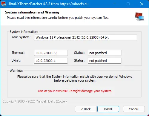 UltraUXThemePatcher — это утилита, позволяющая использовать кастомные темы на Windows без необходимости ручного редактирования системных файлов. Программа работает автоматически, определяя совместимость с текущей версией операционной системы и внося необходимые изменения, если это возможно. Это делает процесс персонализации интерфейса более доступным и безопасным для пользователей, желающих изменить внешний вид системы. Поддержка актуальных обновлений, включая сборки Windows 11, делает её актуальной и для новых конфигураций.