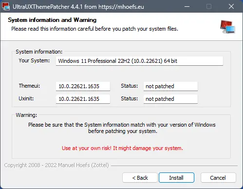 UltraUXThemePatcher — утилита, позволяющая использовать кастомные темы оформления в операционной системе, обходя ограничения, установленные разработчиками Windows. Программа автоматически вносит изменения в системные файлы, чтобы активировать поддержку неофициальных тем. Это решение подходит для пользователей, стремящихся персонализировать внешний вид интерфейса без необходимости вручную редактировать системные библиотеки.