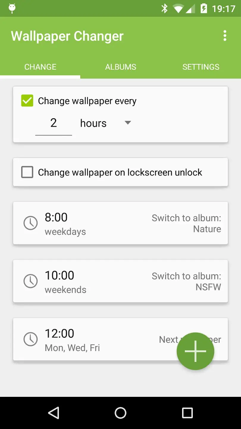 - Возможность настроить автоматическую смену обоев по интервалу, при разблокировке или вручную через виджет