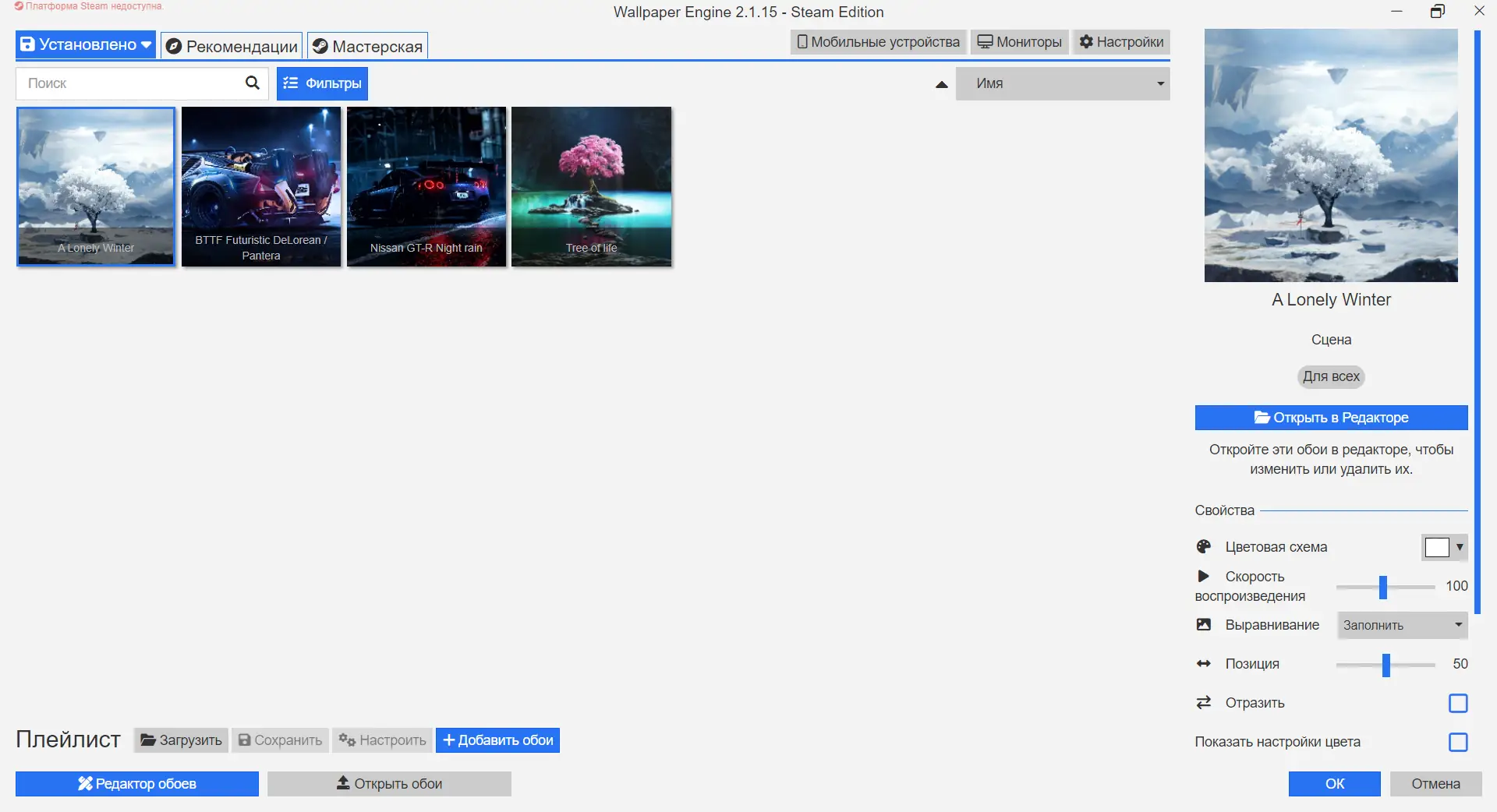 - Интеграция с платформой стим позволяет загружать и редактировать обои прямо из мастерской, не прерывая рабочий процесс.