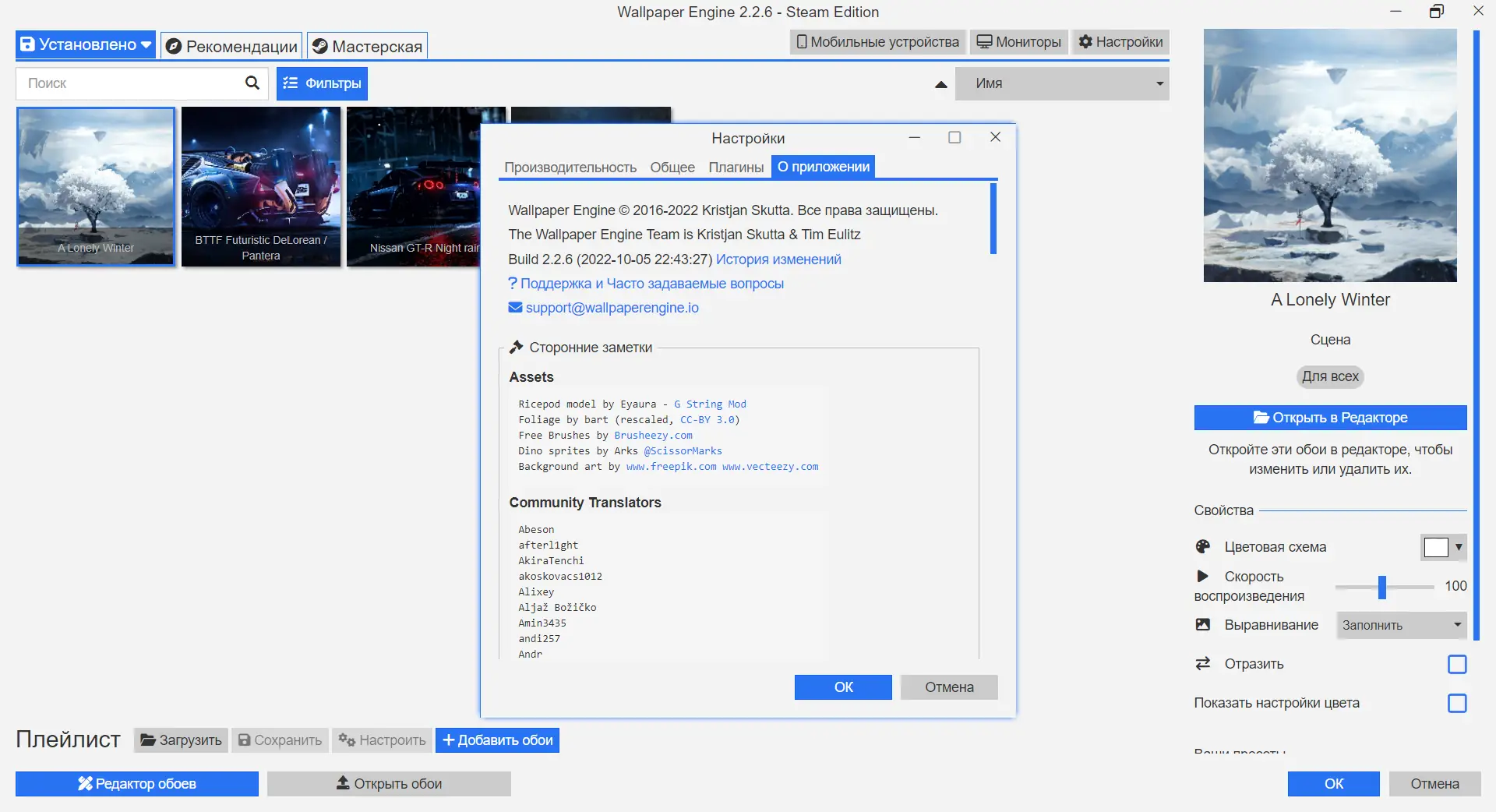 - Интеграция с мастерской Steam позволяет скачивать и делиться обоями, не покидая платформу.