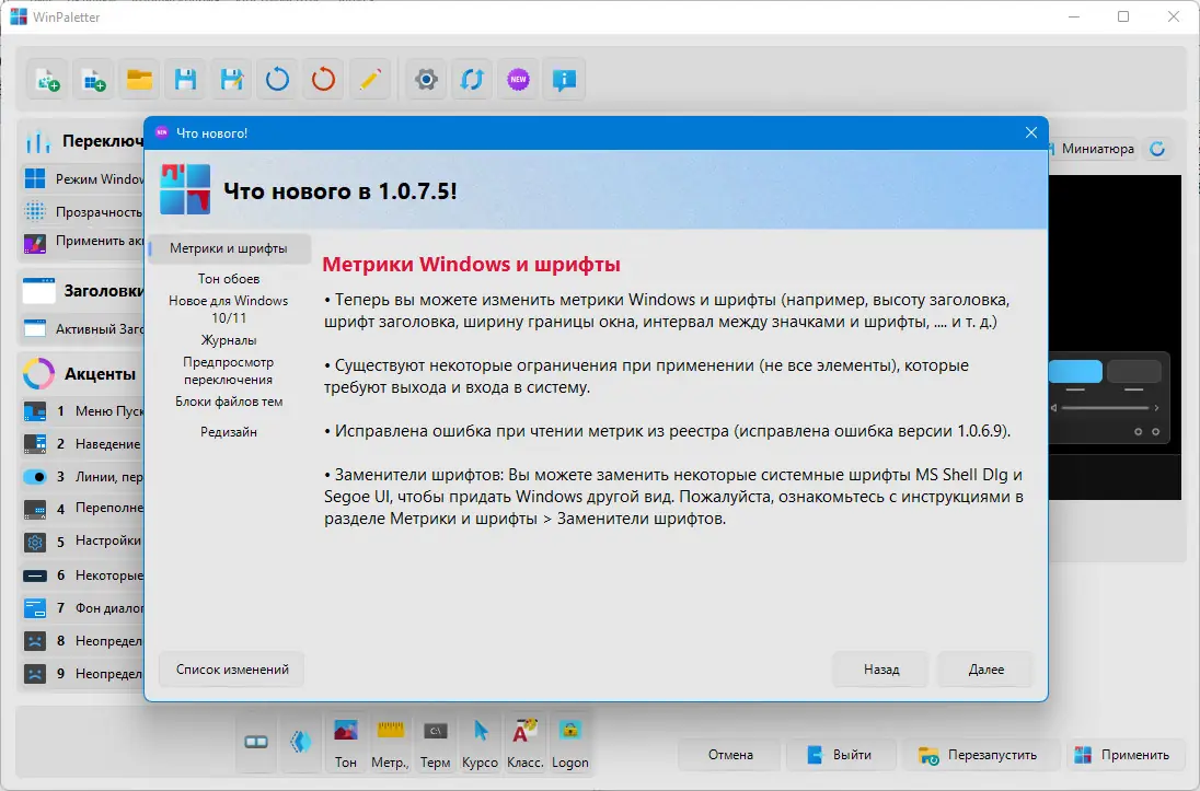 - Полноценная настройка тем без вмешательства в реестр вручную.