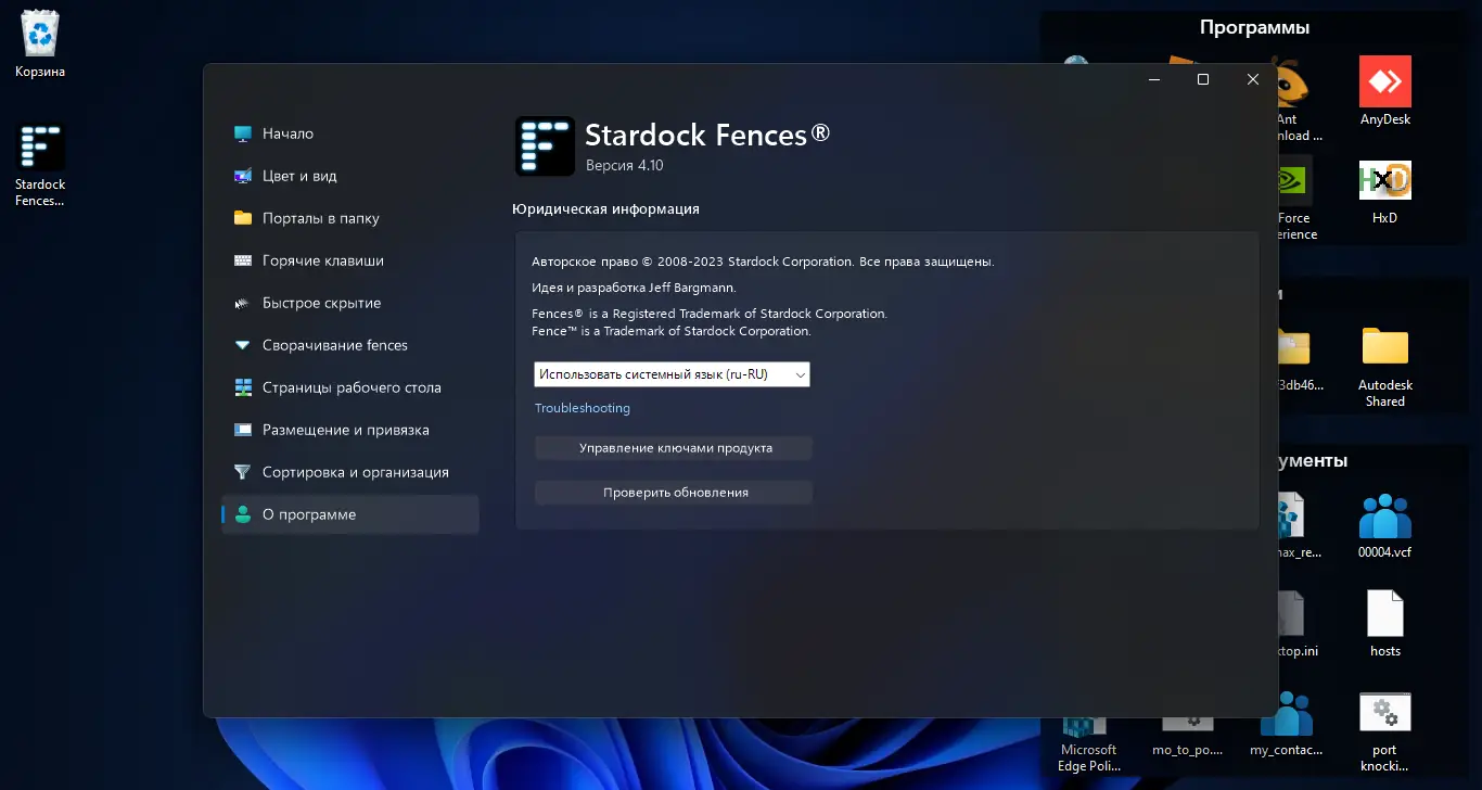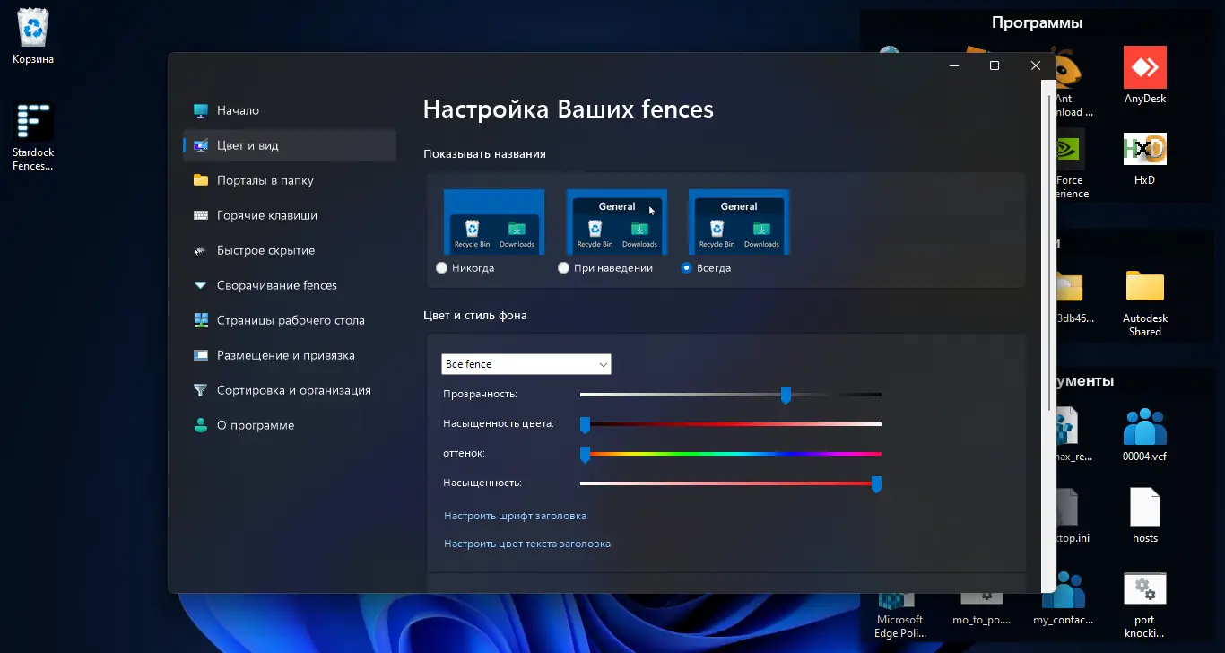 Работа с Stardock Fences