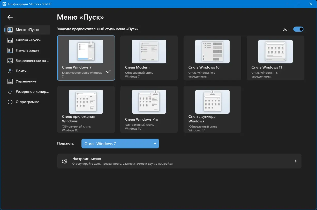 Start11 — это инструмент для тонкой настройки главного меню операционной системы, разработанный с учётом особенностей интерфейса Windows 11. Программа устраняет ограничения нового дизайна «Пуска», возвращая пользователям контроль над структурой и поведением меню. Она поддерживает кастомизацию позиционирования, стилизации, анимации и поведения элементов, включая возможность возврата классического вида с левой стороны экрана.