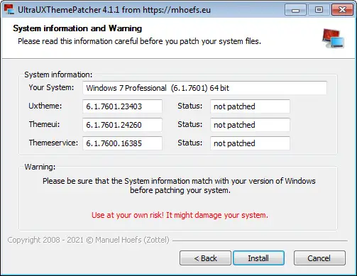 - Программа активирует поддержку кастомных тем, изменяя поведение системного модуля uxtheme.dll.