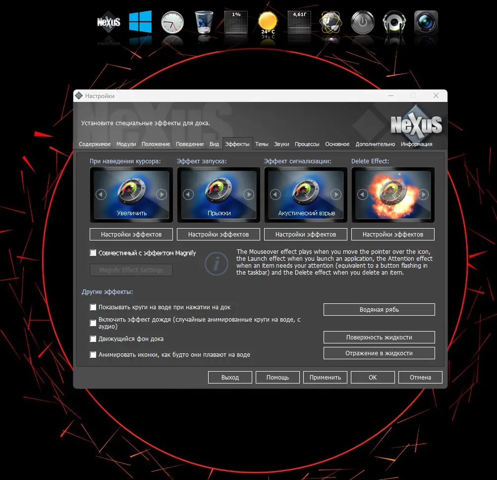 Winstep Nexus предлагает множество преимуществ, делающих его одним из лучших решений в категории оформления рабочего стола. Программа обладает высокой стабильностью, минимальным потреблением ресурсов и широкими возможностями кастомизации. При этом она остаётся интуитивно понятной даже для начинающих пользователей.