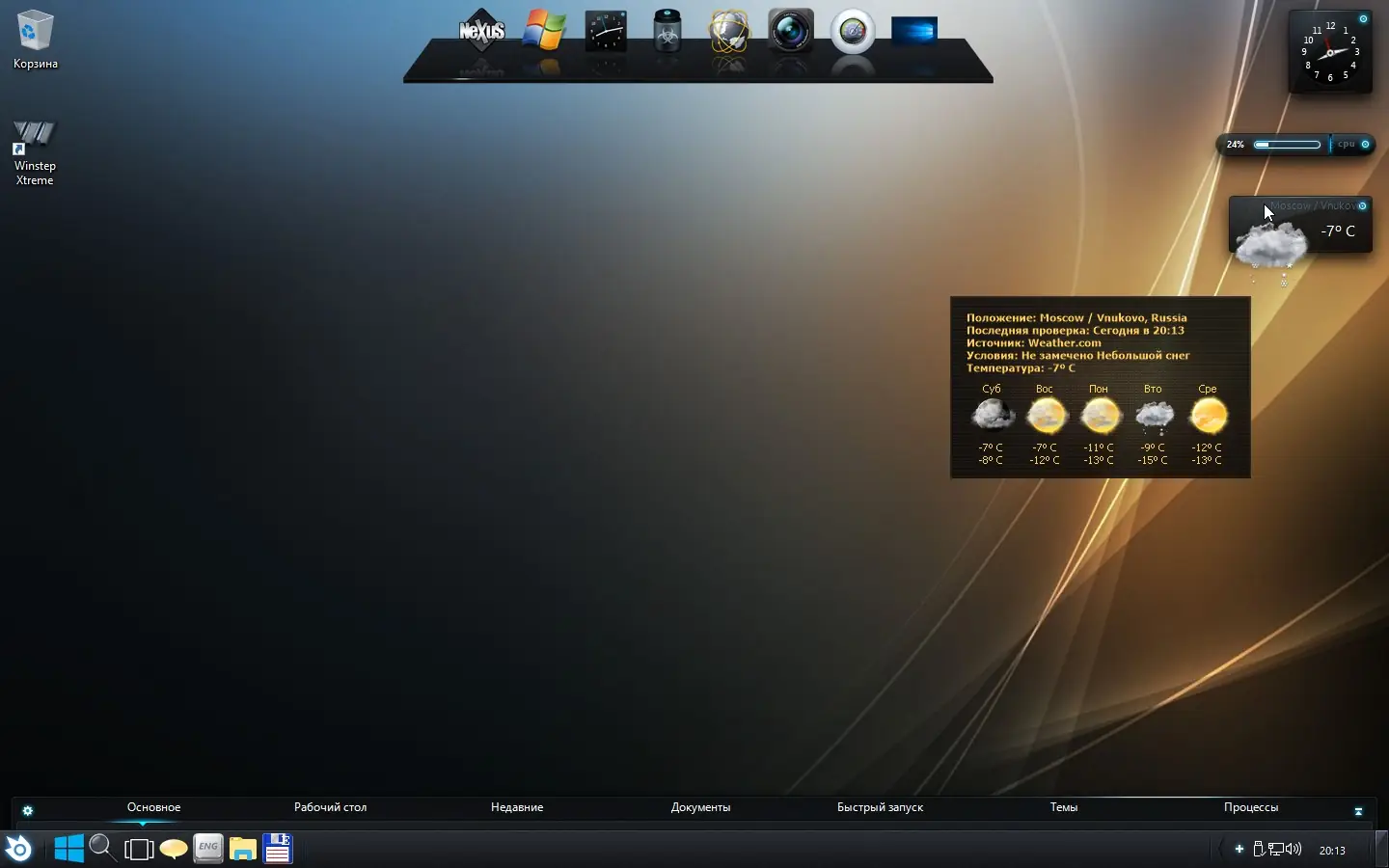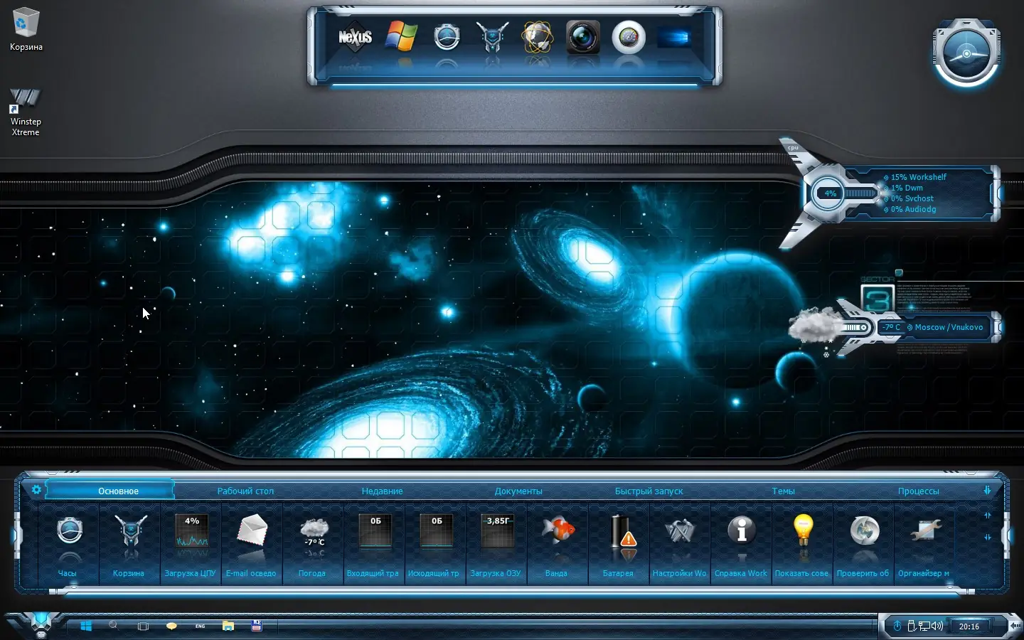 После установки Winstep Xtreme автоматически интегрируется в систему, заменяя ключевые компоненты интерфейса. Пользователь может настраивать внешний вид каждого модуля через центральное меню, где доступны параметры прозрачности, анимации, расположения панелей и поведения виджетов. Для добавления новых элементов используется контекстное меню, позволяющее вставить гаджеты, ярлыки или системные мониторы. Работа с программой интуитивна благодаря продуманному дизайну и поддержке перетаскивания объектов. Настройки можно экспортировать и импортировать, что удобно при переустановке системы или использовании repack версии на другом устройстве.