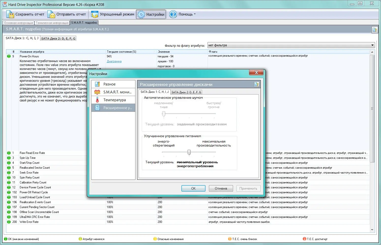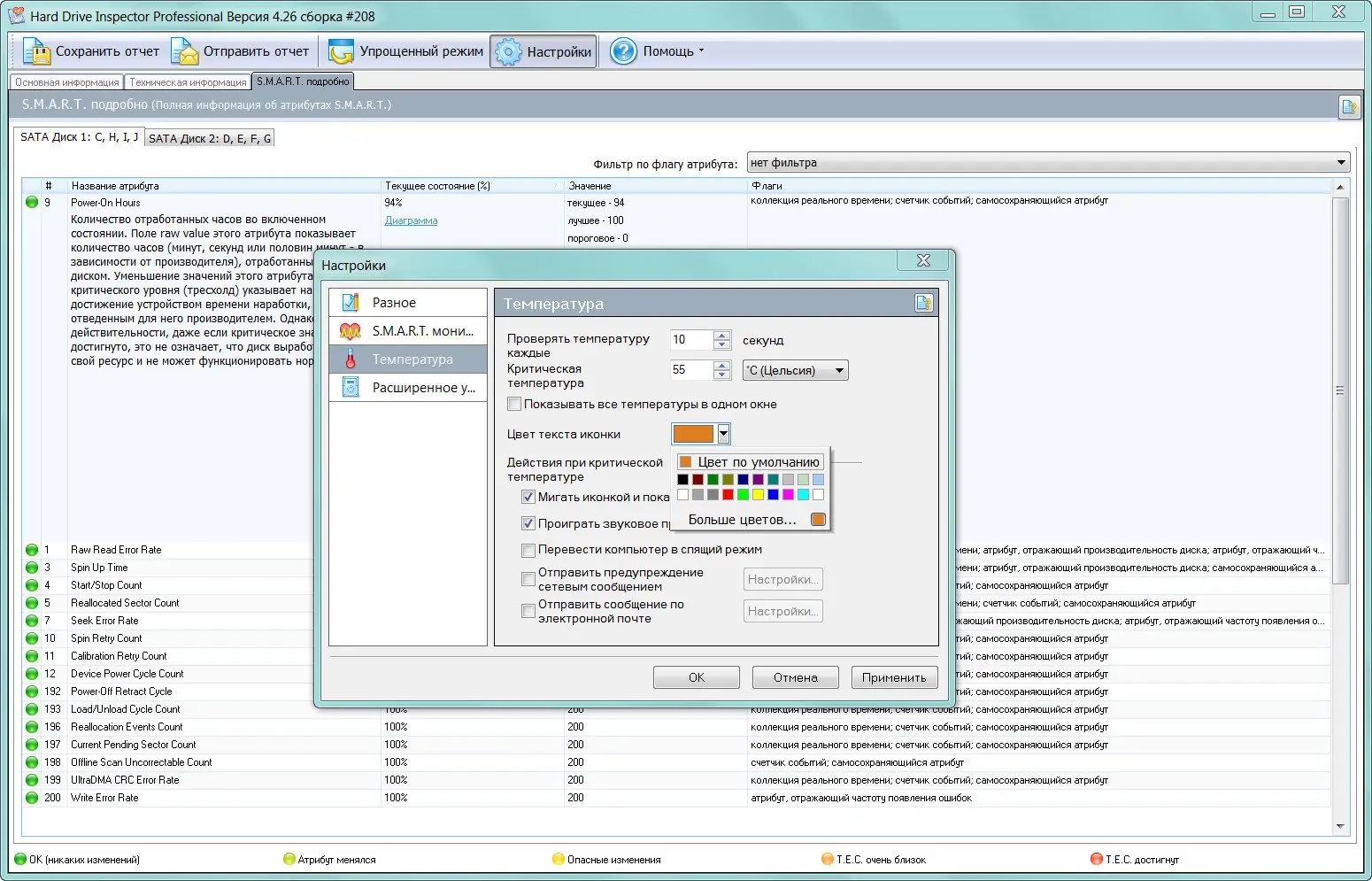 - Регулярный мониторинг состояния накопителей в фоновом режиме