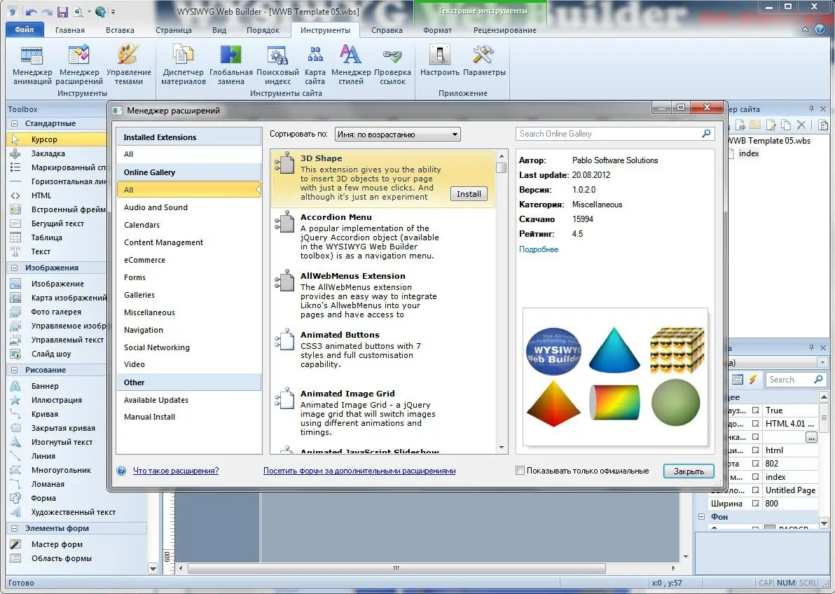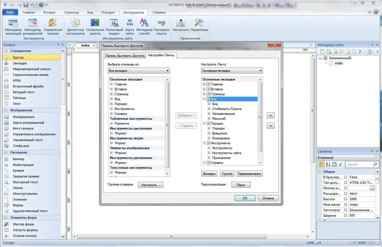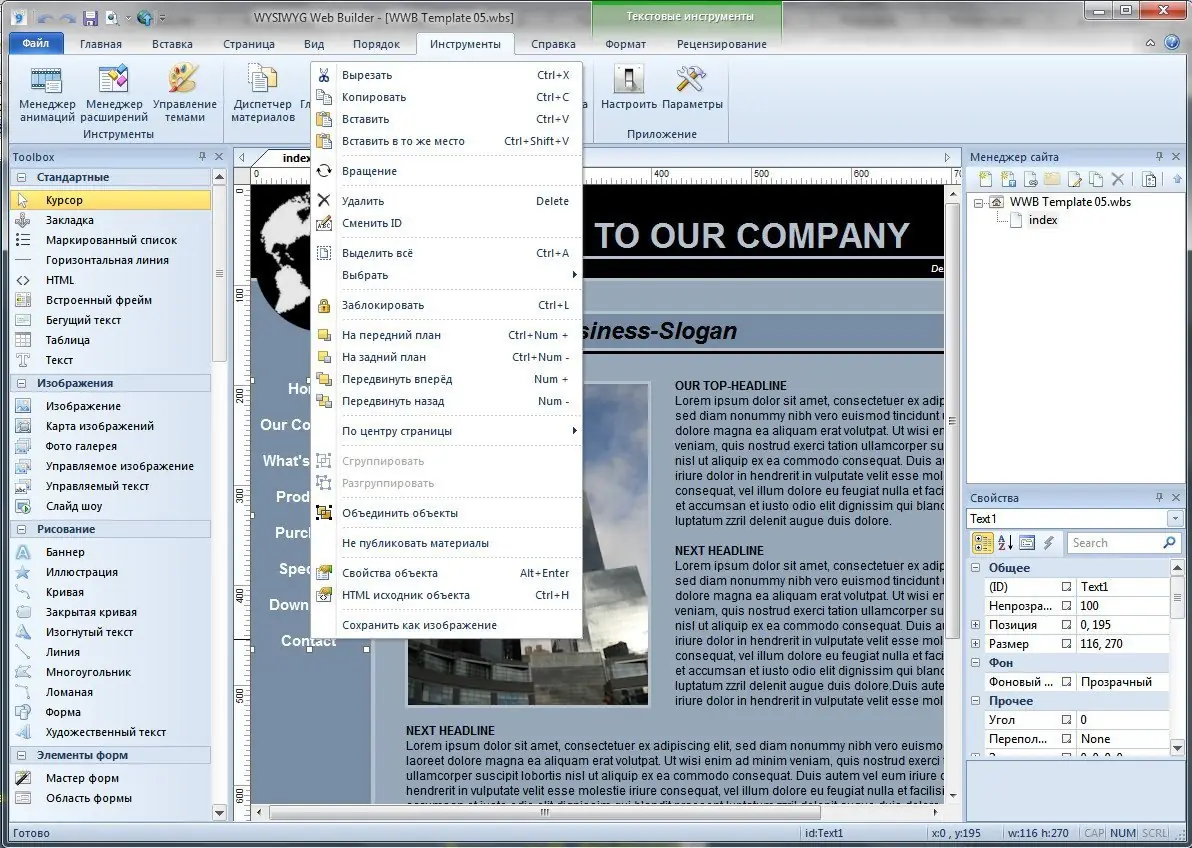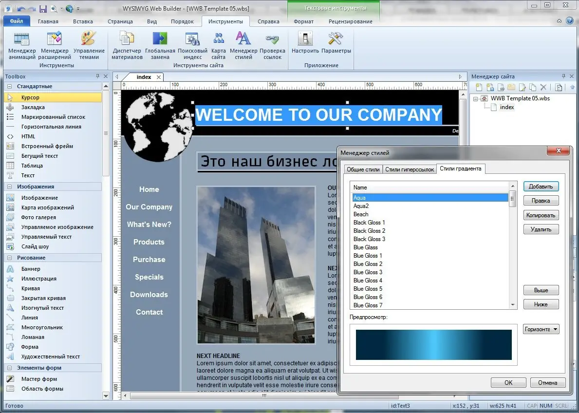 Работа с WYSIWYG Web Builder
