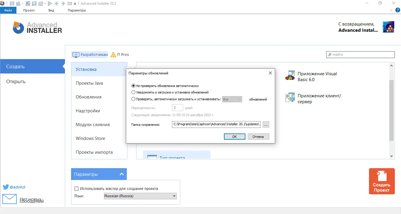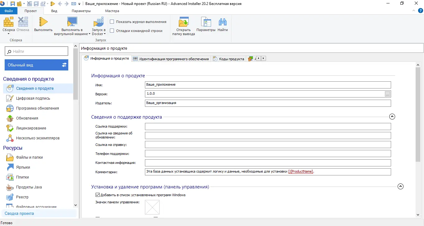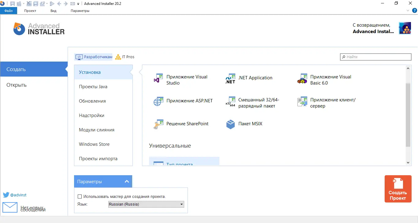 Работа с Advanced Installer