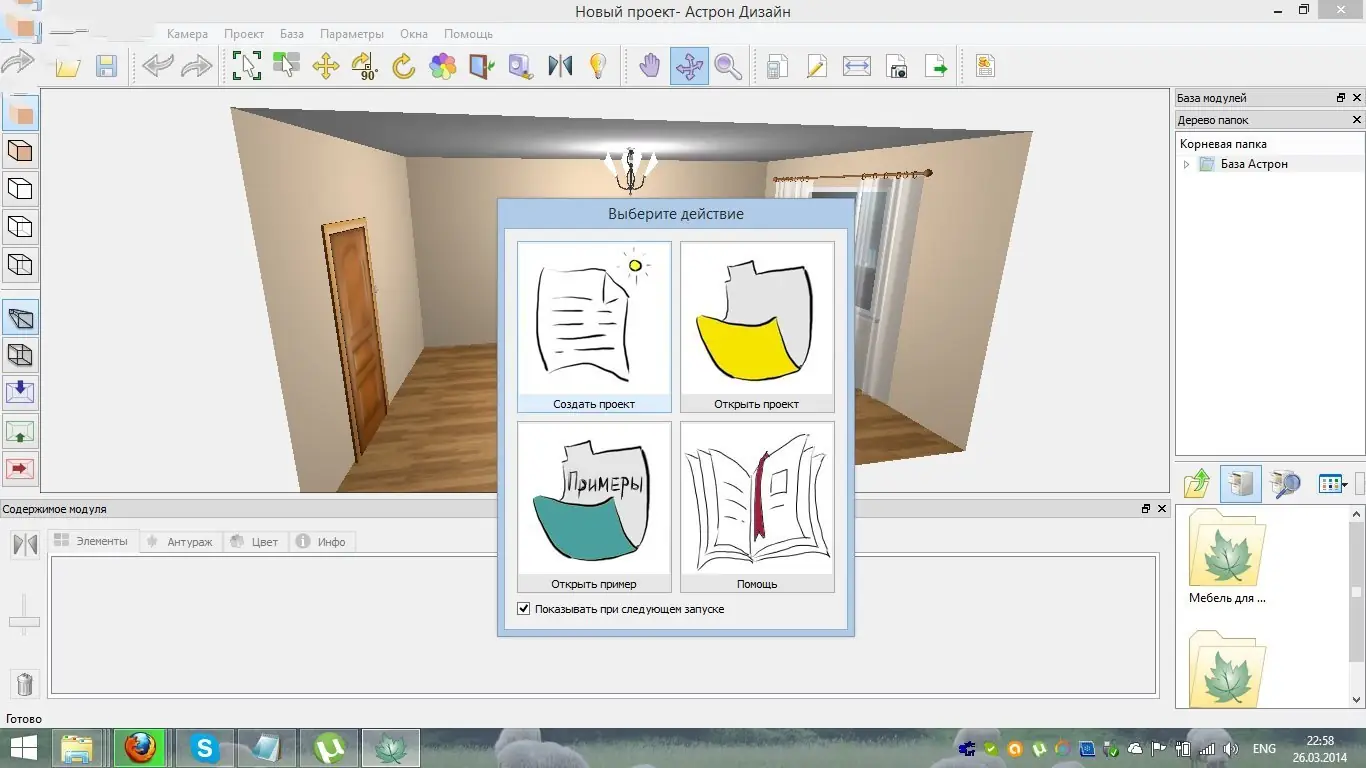 Астрон Дизайн — это программное обеспечение для 3D-моделирования интерьера, позволяющее создать точную визуализацию комнаты с расстановкой мебели и аксессуаров. Пользователь может самостоятельно проектировать пространство, изменять цветовые решения, подбирать фасады и конфигурации мебели. Программа ориентирована на тех, кто хочет заранее увидеть, как будет выглядеть интерьер после обустройства.