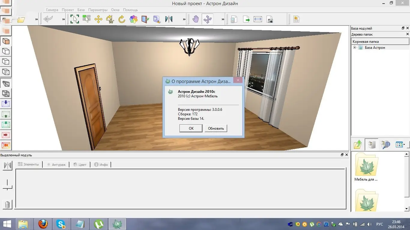 - Интеграция с каталогом модульной мебели компании АСТРОН, включая гостиные и спальни