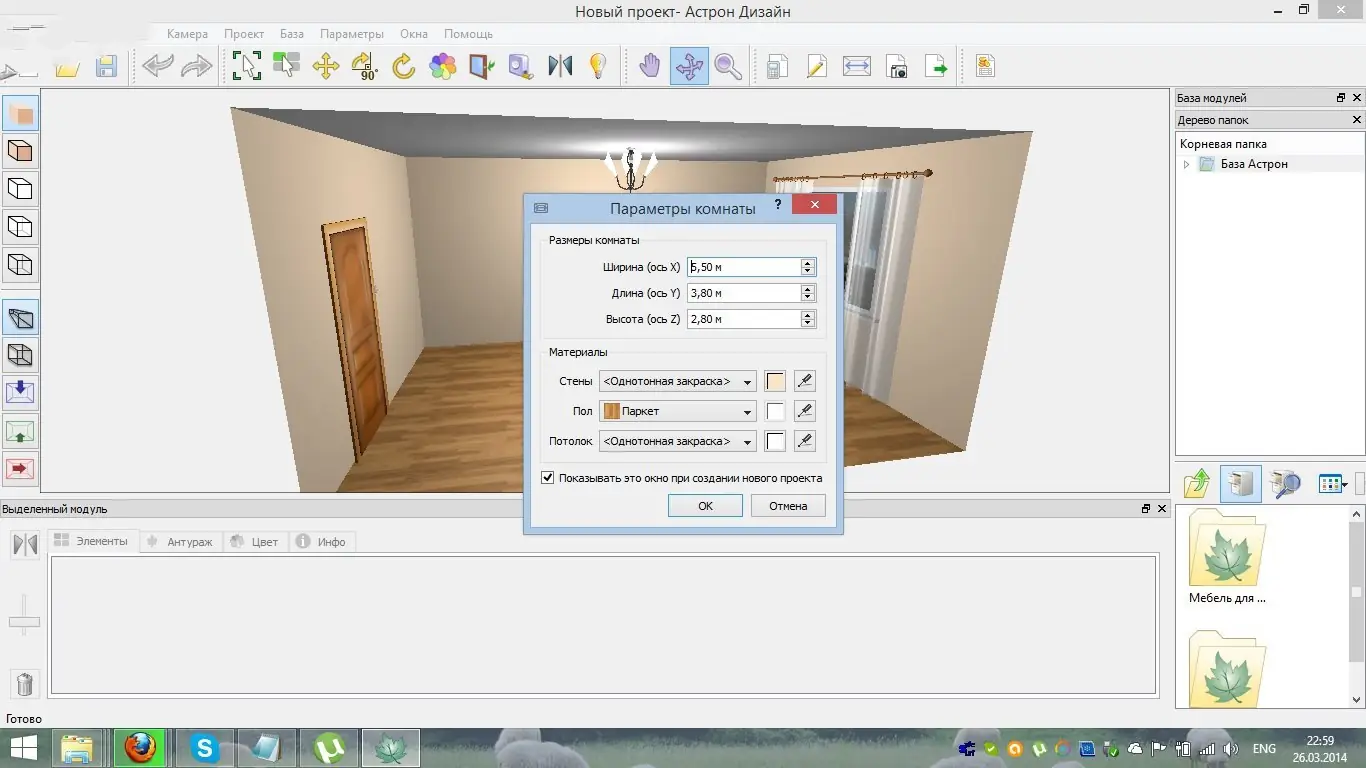 Астрон Дизайн разработана для удобного и интуитивного проектирования жилых помещений с использованием реалистичной графики. Программа предлагает полный цикл визуального оформления: от задания параметров комнаты до детальной расстановки предметов интерьера. Каждый элемент отображается в трёхмерном пространстве, что обеспечивает высокую степень наглядности при планировании.