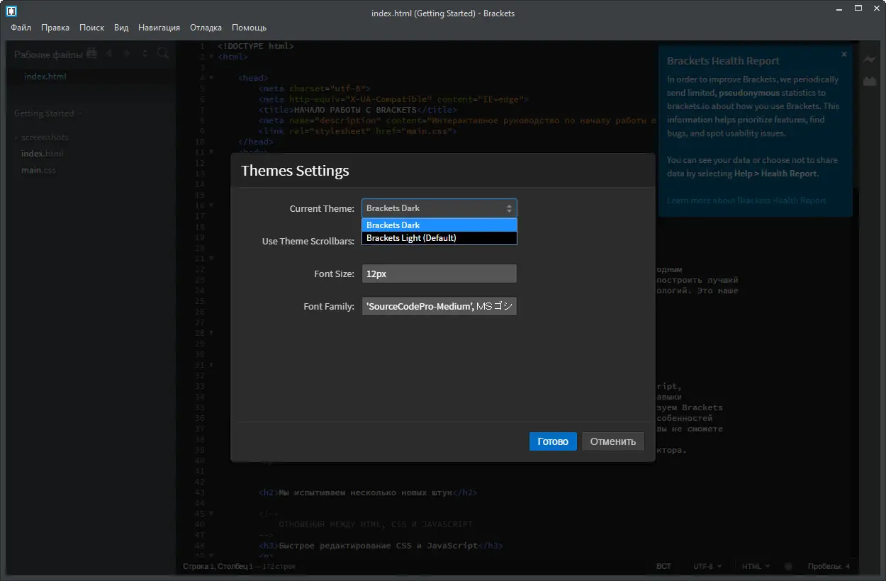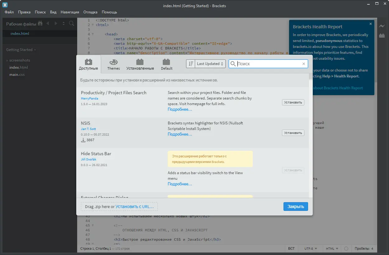 Работа с Brackets