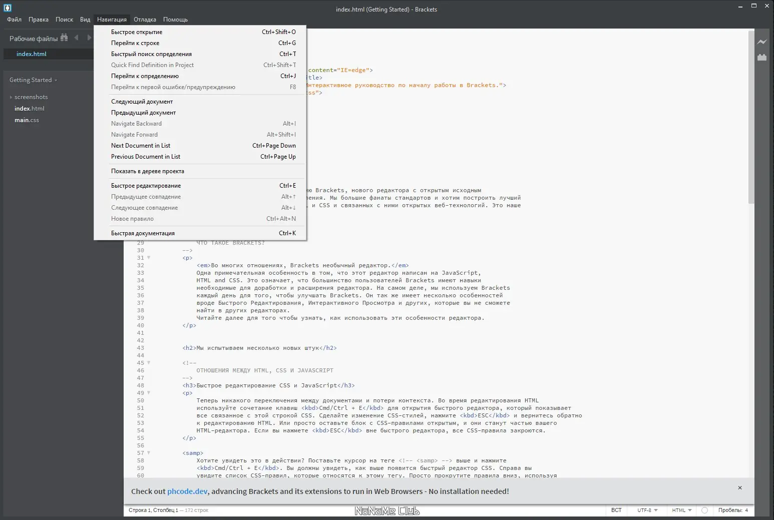 Как пользоваться Brackets