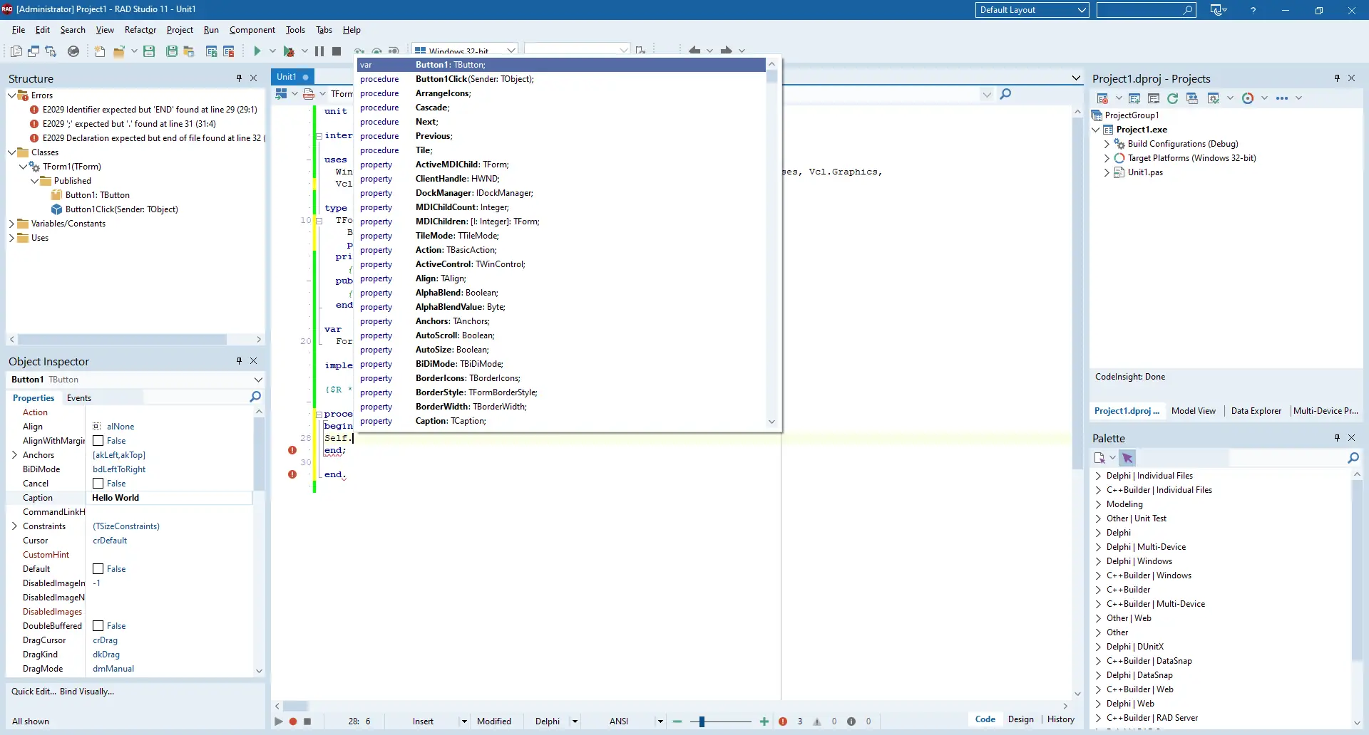 Работа с Embarcadero RAD Studio