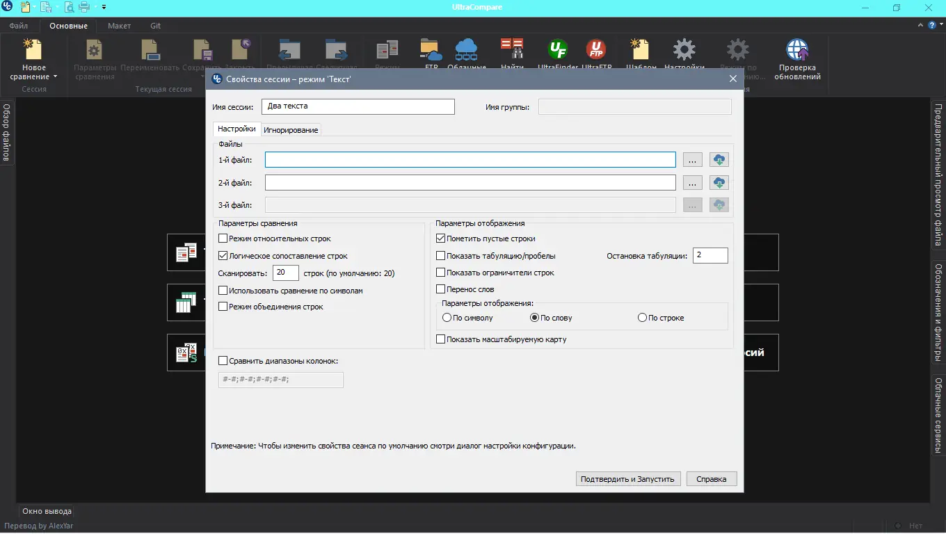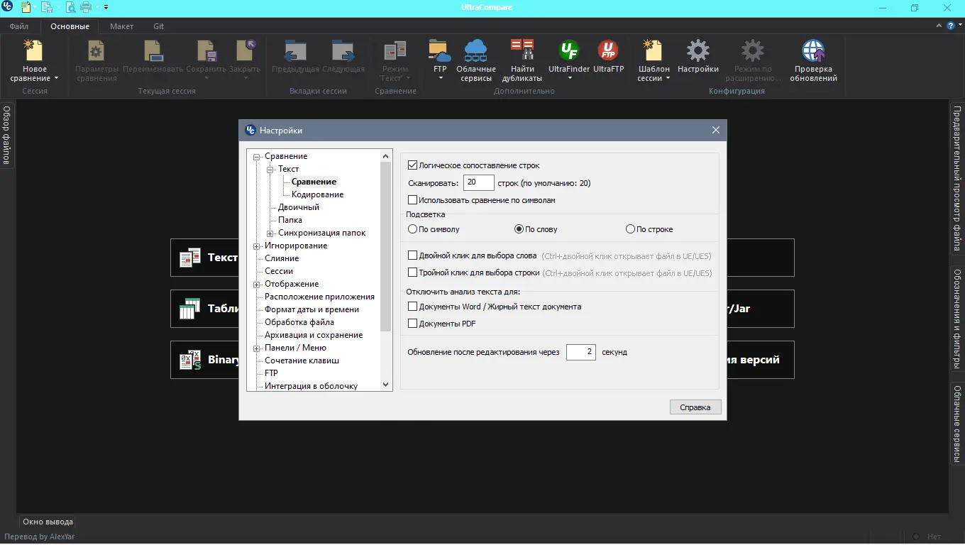 - Гибкие настройки синхронизации и сравнения с сохранением сессий