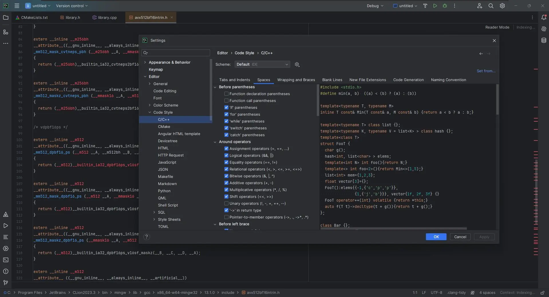 - Поддержка CMake с автоматическим обновлением проекта и интеллектуальным добавлением файлов.