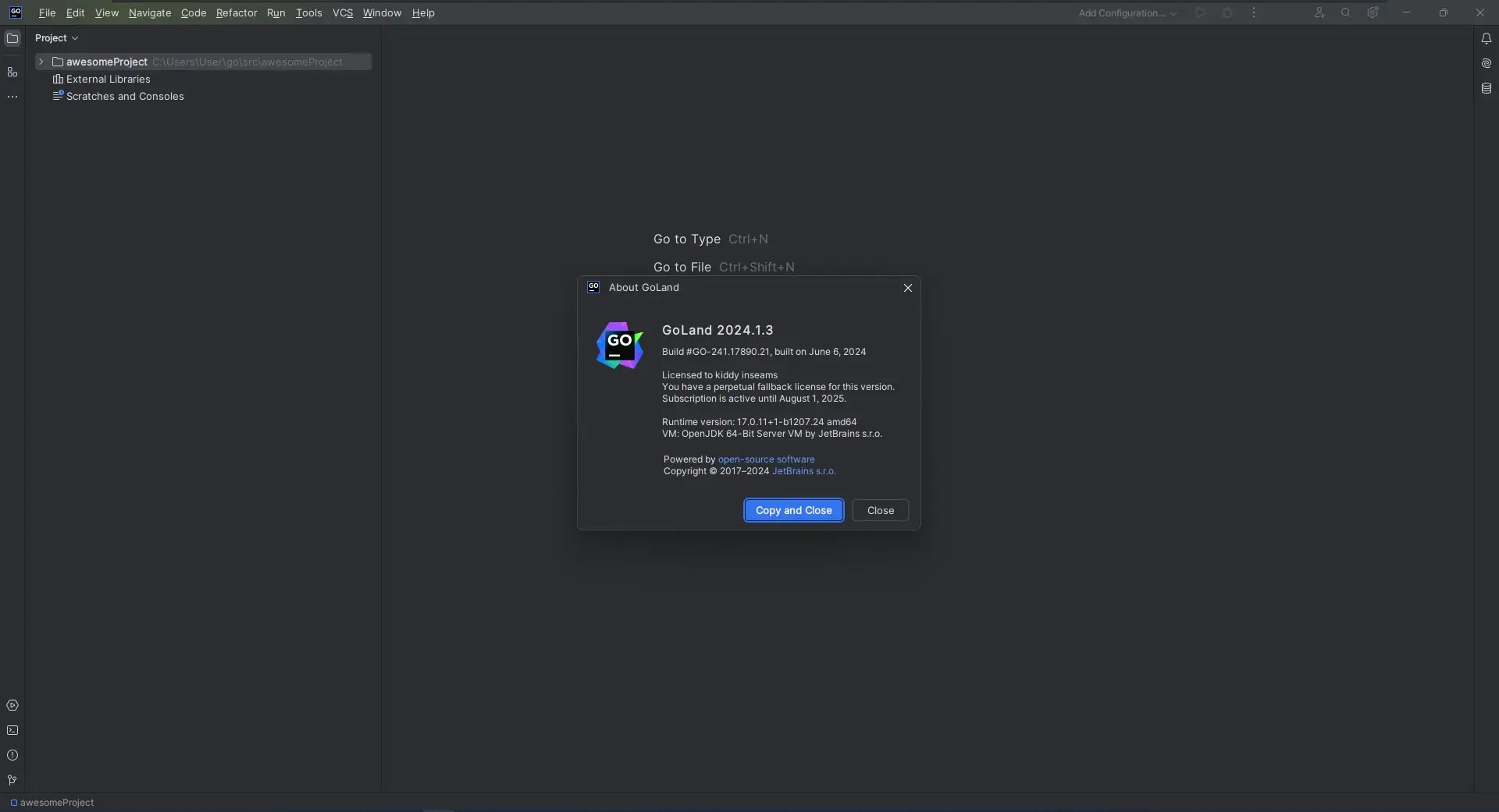 Работа с JetBrains GoLand