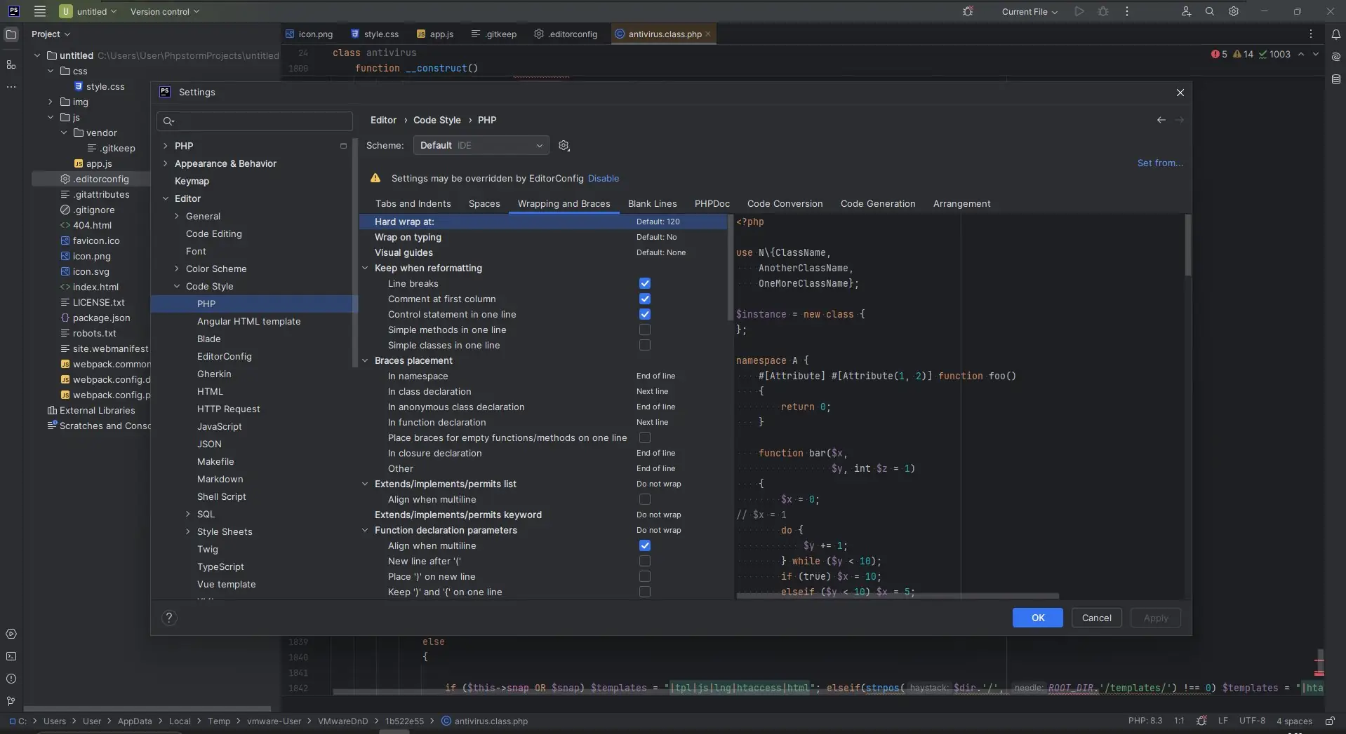 - Интеллектуальный редактор с подсветкой синтаксиса и автодополнением, способный понимать контекст и структуру PHP-кода.