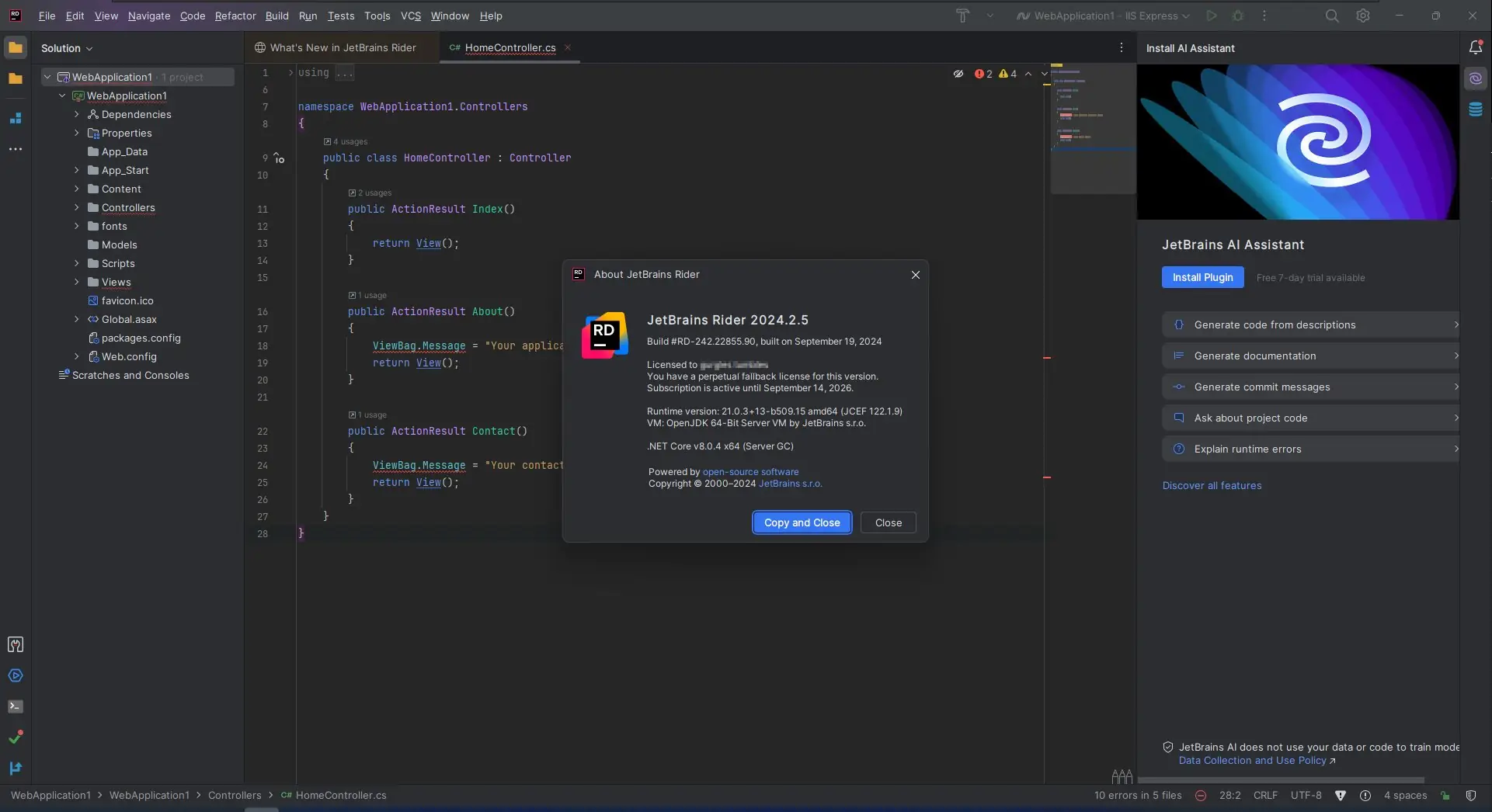 JetBrains Rider доступен для установки на всех основных платформах, включая Windows, macOS и Linux. Процесс установки прост и не требует дополнительных компонентов. Для активации используется встроенный механизм, позволяющий запустить среду без необходимости ручного ввода данных. Программа регулярно обновляется, включая поддержку новых языковых функций и интеграций. Версия 2025 года предлагает улучшенную производительность и новые возможности для разработчиков, работающих в распределённых командах. Активация происходит автоматически, что упрощает начало работы. Среда также поддерживает интеграцию с репозиториями на GitHub, обеспечивая быстрый старт проекта.