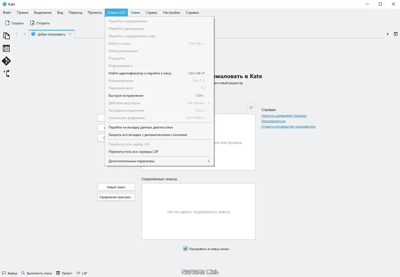 Работа с Kate