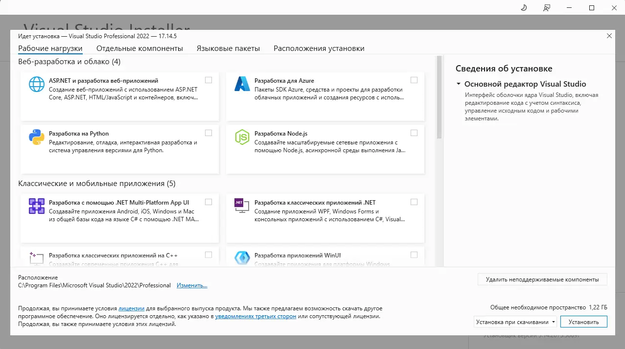 - Рабочие нагрузки позволяют устанавливать только необходимые компоненты, что оптимизирует использование ресурсов системы.