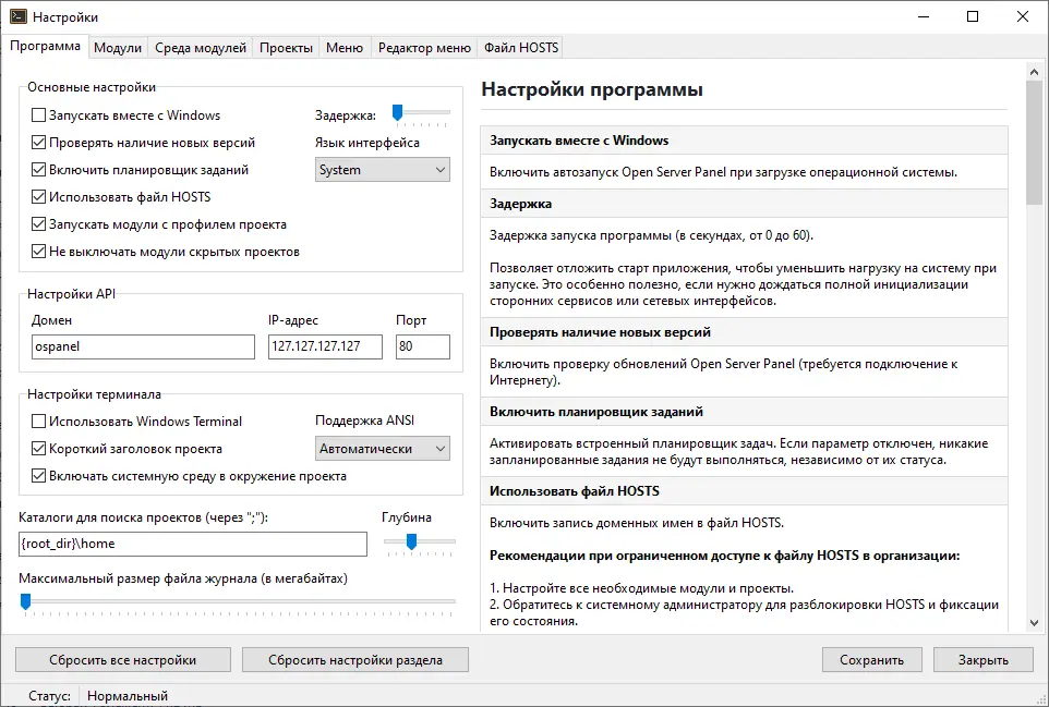 Open Server Panel демонстрирует высокий уровень интеграции всех компонентов, что снижает порог входа для новичков. Удобный интерфейс, поддержка высоких разрешений экрана и локализация на русский язык делают работу комфортной. Программа регулярно обновляется, исправляя найденные ошибки и добавляя новые возможности. Поддержка различных конфигураций позволяет использовать её как для обучения, так и для профессиональной разработки. При этом платформа остаётся лёгкой и не перегружает систему при правильной настройке.