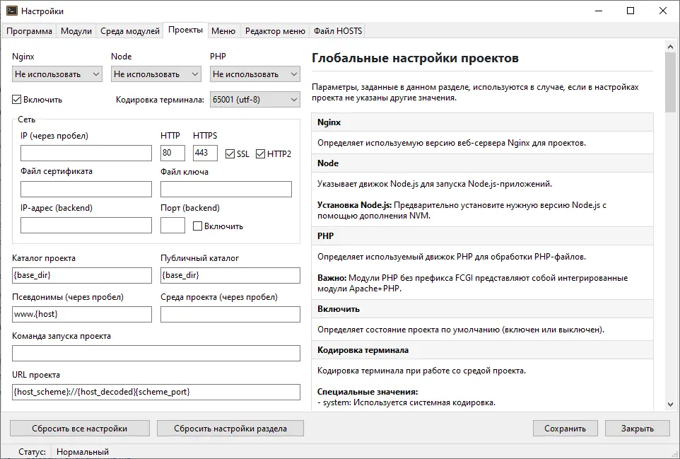 Использование Open Server Panel начинается с выбора нужных модулей: веб-сервера, базы данных и версии PHP. После запуска платформы пользователь может добавлять проекты, указывая папку с файлами и доменное имя. Настройка происходит через интуитивный интерфейс, где доступны параметры виртуальных хостов, портов и переменных окружения. Для тестирования почтовых функций включён Mailpit, который перехватывает и отображает все отправляемые письма. Работа с командной строкой упрощена за счёт встроенных утилит, таких как curl, wget, jq и composer. Обновление сертификатов и ключей выполняется одной командой, что повышает безопасность среды. Проекты можно архивировать, а при необходимости — быстро восстанавливать из архива без потери настроек. Поддержка NVM позволяет управлять несколькими версиями Node.js, что полезно при работе с современными фронтенд-сборками.