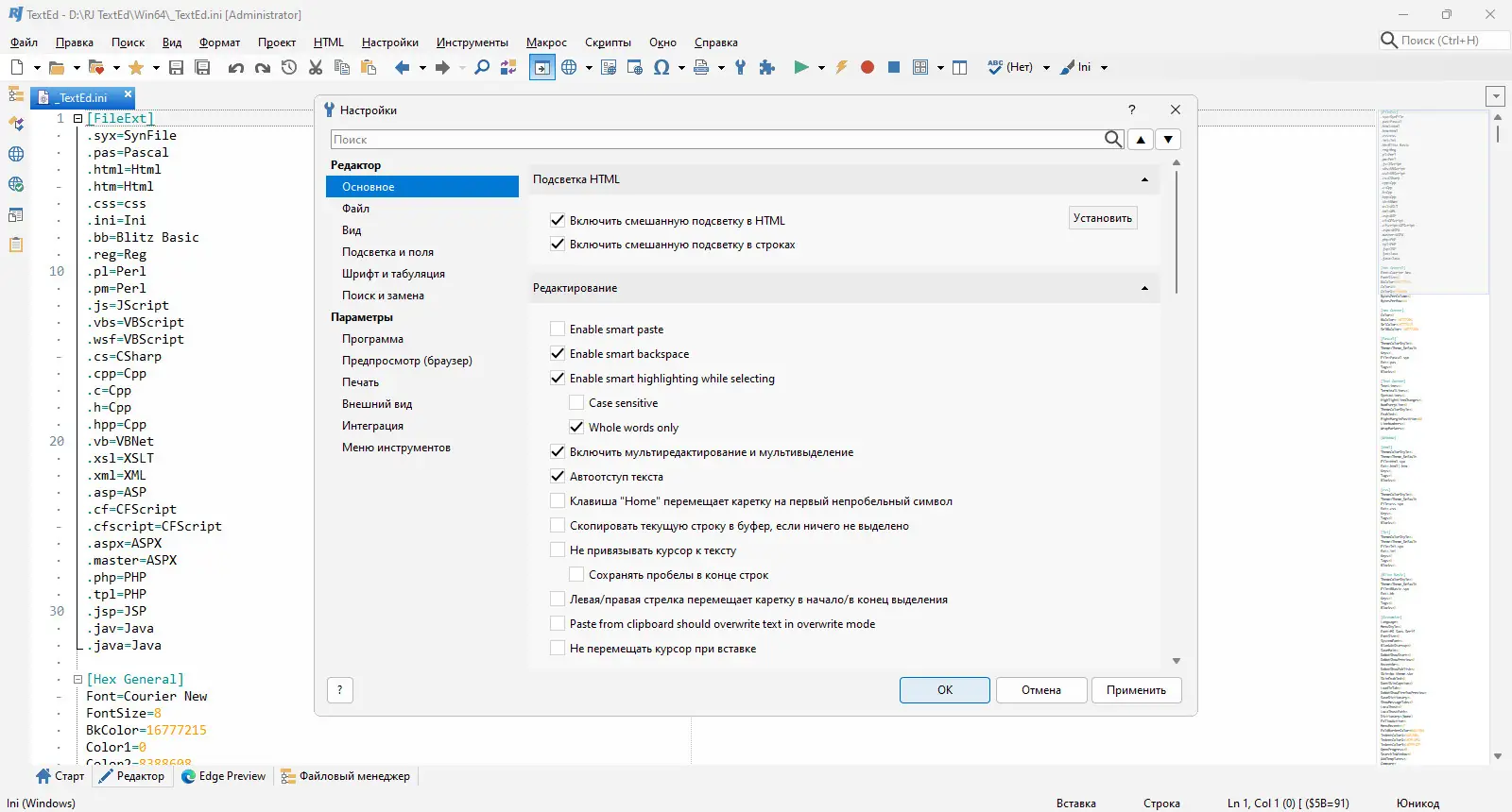 - Редактор способен обрабатывать как текстовые, так и бинарные файлы, расширяя сферу применения.