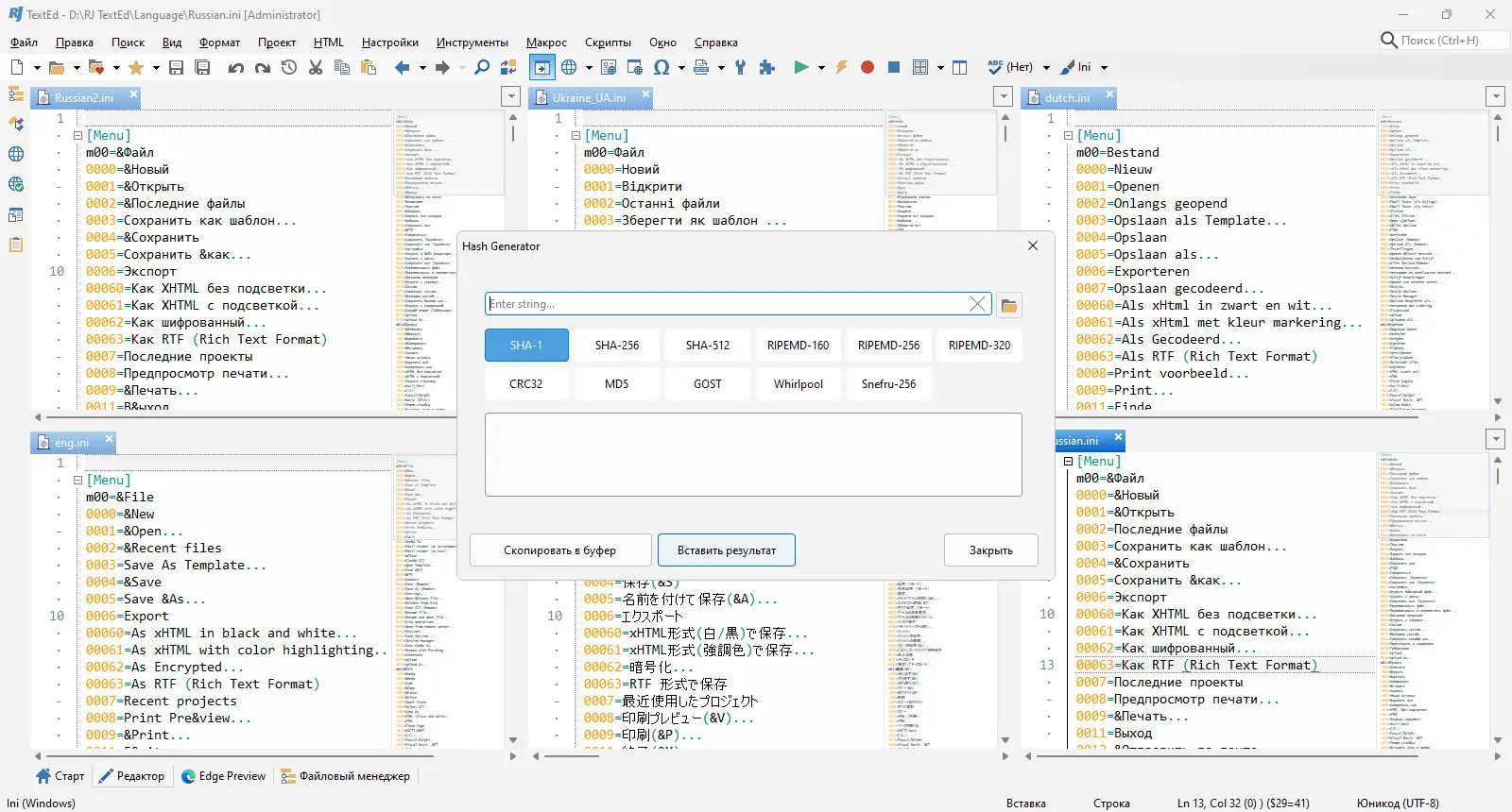 RJ TextEd — это мощное приложение, ориентированное на работу с исходным кодом, разметкой и стилями. Редактор поддерживает кодировки ANSI, UTF-8, Unicode и Unicode Big Endian, что обеспечивает корректное отображение текста в разных системах. Он автоматически определяет тип кодировки, предотвращая искажение символов при открытии файлов. Это особенно полезно при работе с проектами, созданными в различных операционных средах или передаваемыми между разработчиками.